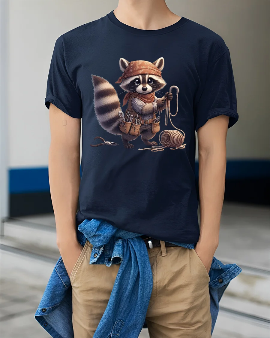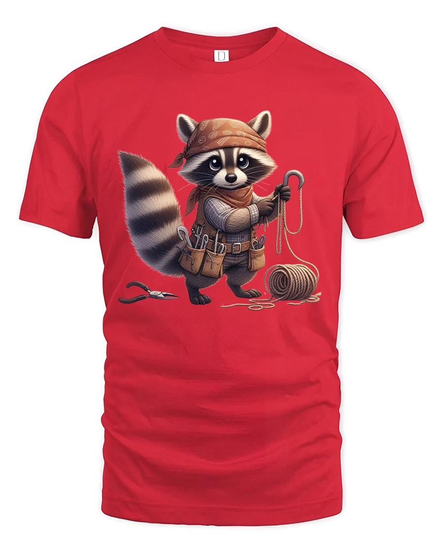 The Raccoon Craftsman Adventure T Shirt brings charm and humor together in one standout graphic tee.