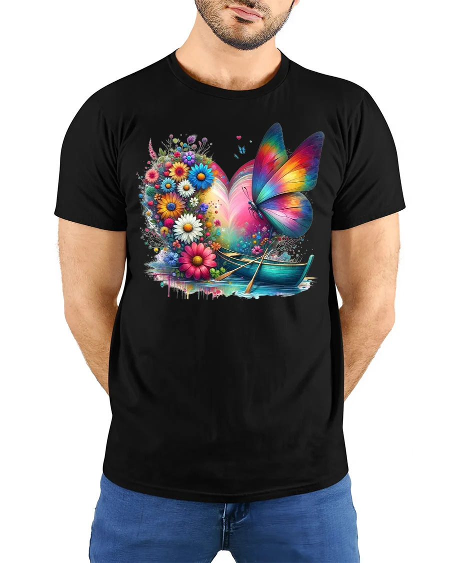 The Rainbow Butterfly Garden Boat Fantasy Graphic Tee also makes a thoughtful gift for friends and loved ones who adore butterflies, flowers, or magical designs. Celebrate your love for creativity, nature, and vibrant energy with this unique and artistic t-shirt.