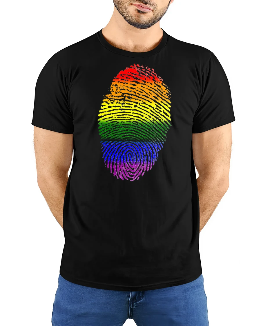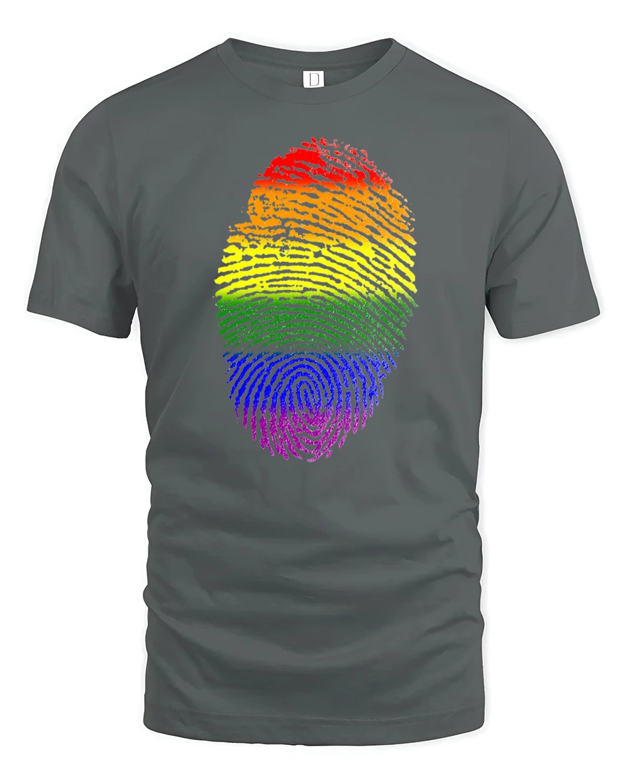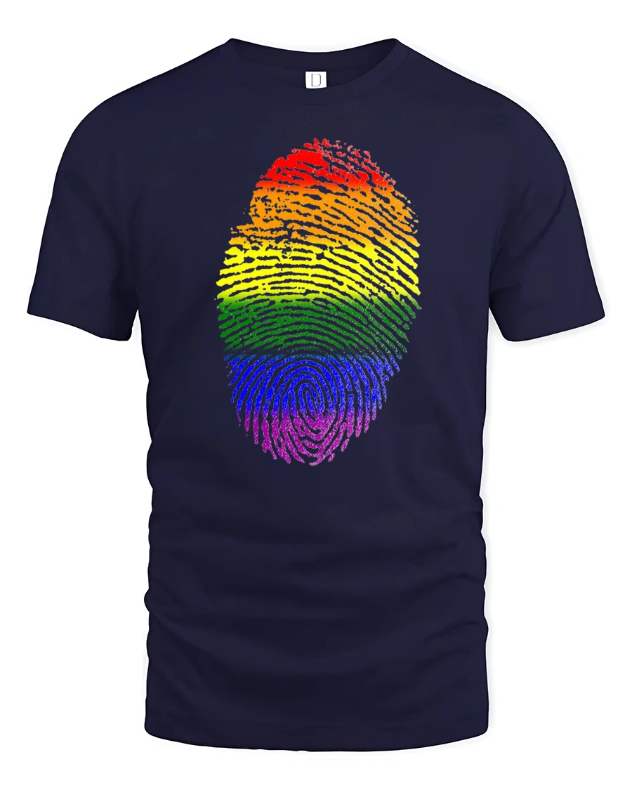 Rainbow Fingerprint Graphic Tee showcases a powerful and colorful fingerprint design that represents individuality creativity and self expression.