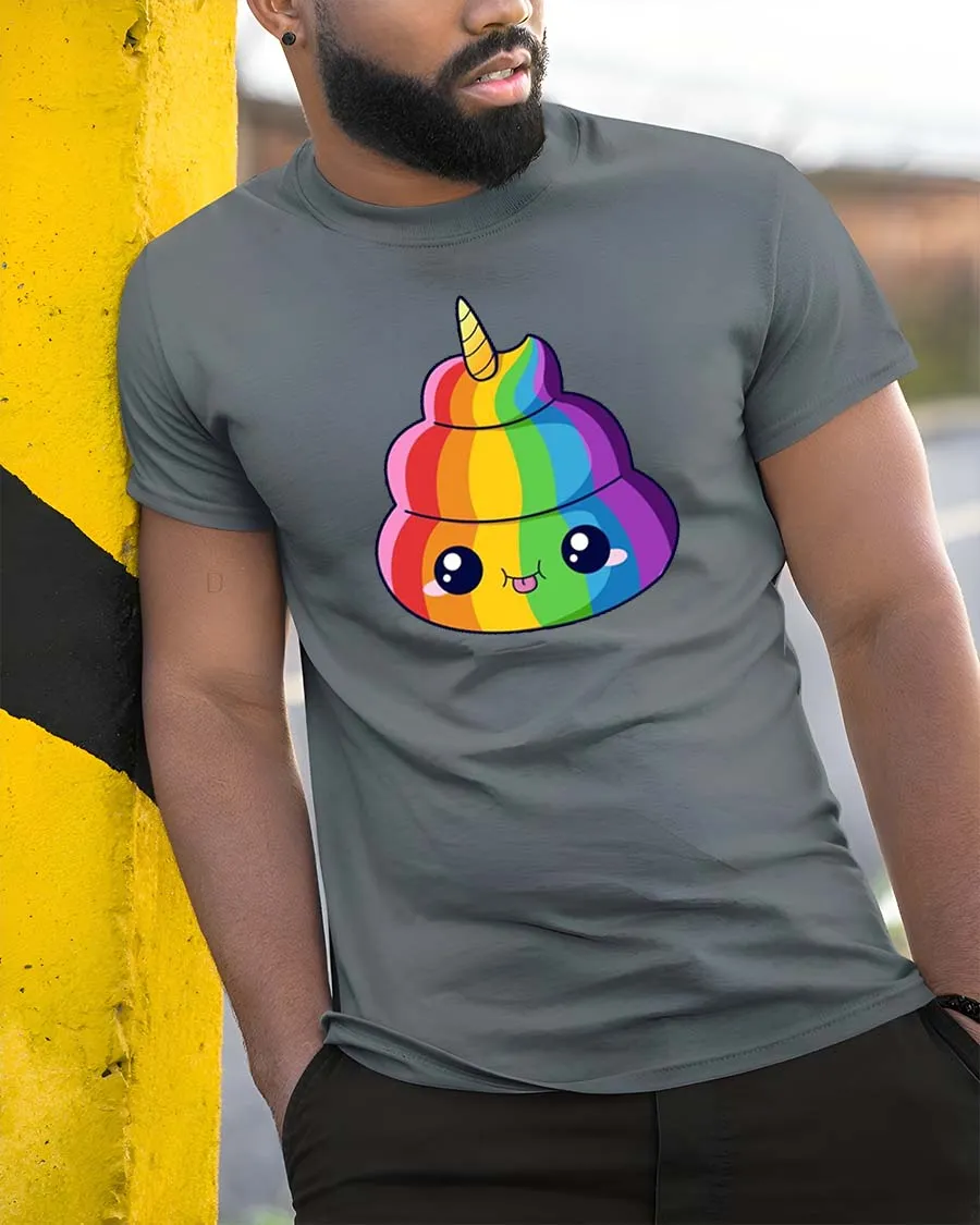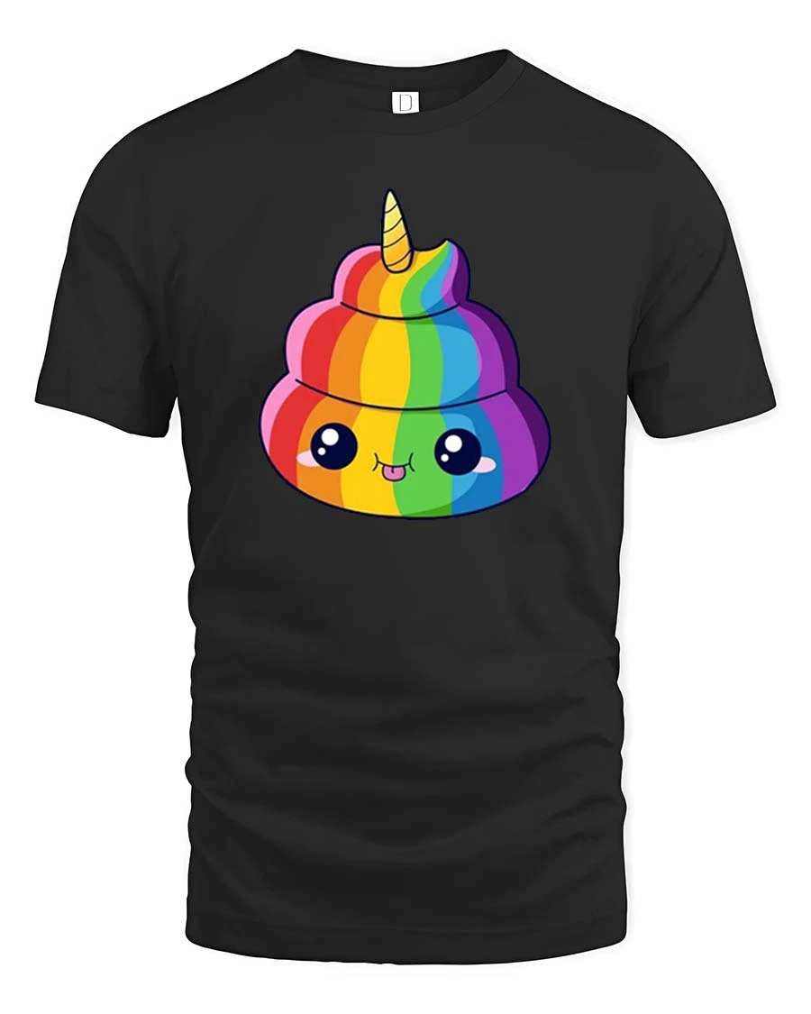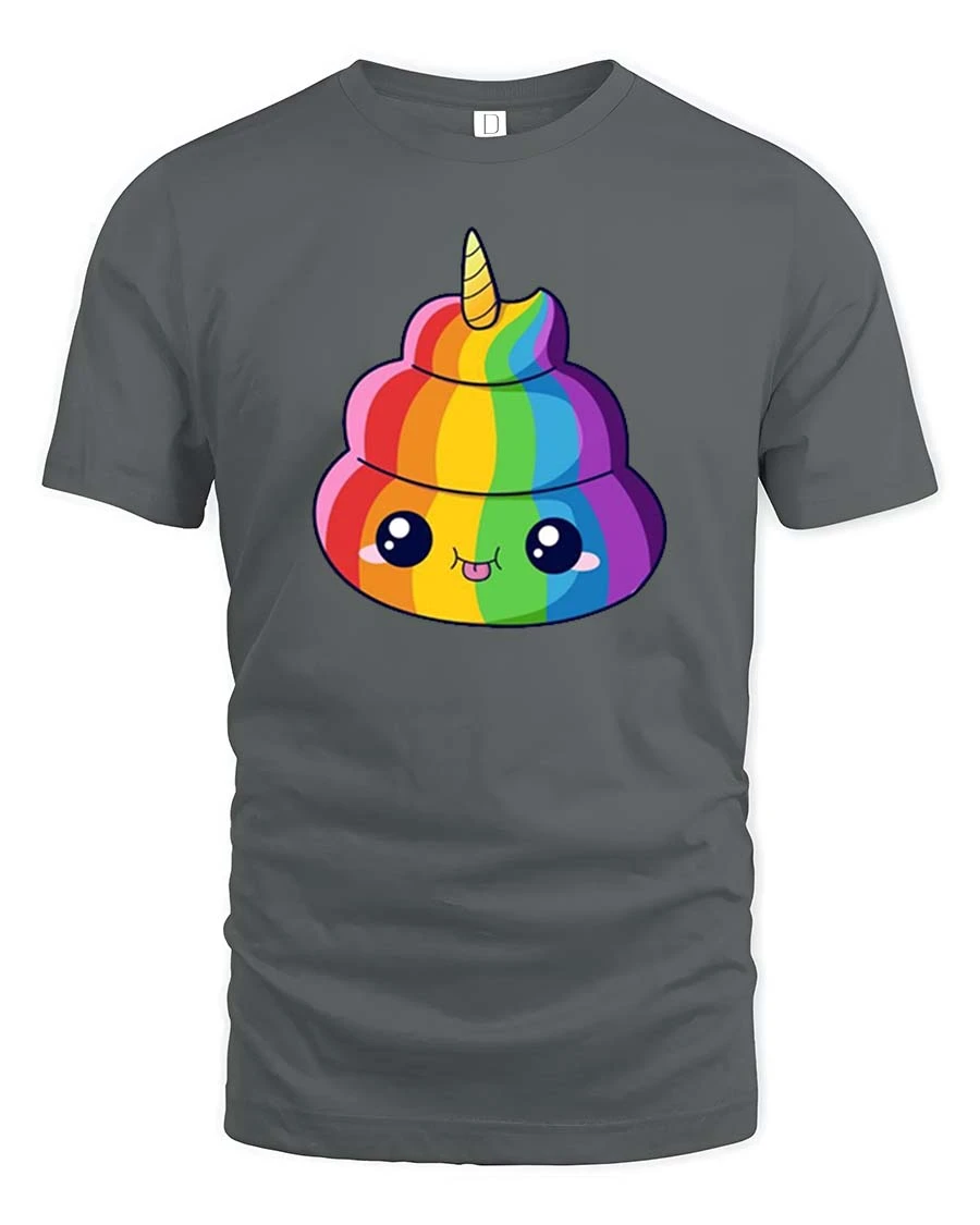 Rainbow Unicorn Poop Cute Funny Graphic t-shirt Kawaii Tee adds personality and humor to any graphic tee collection.