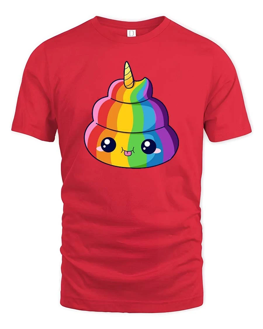 Rainbow Unicorn Poop Cute Funny Graphic t-shirt Kawaii Tee - red t-shirt on white background