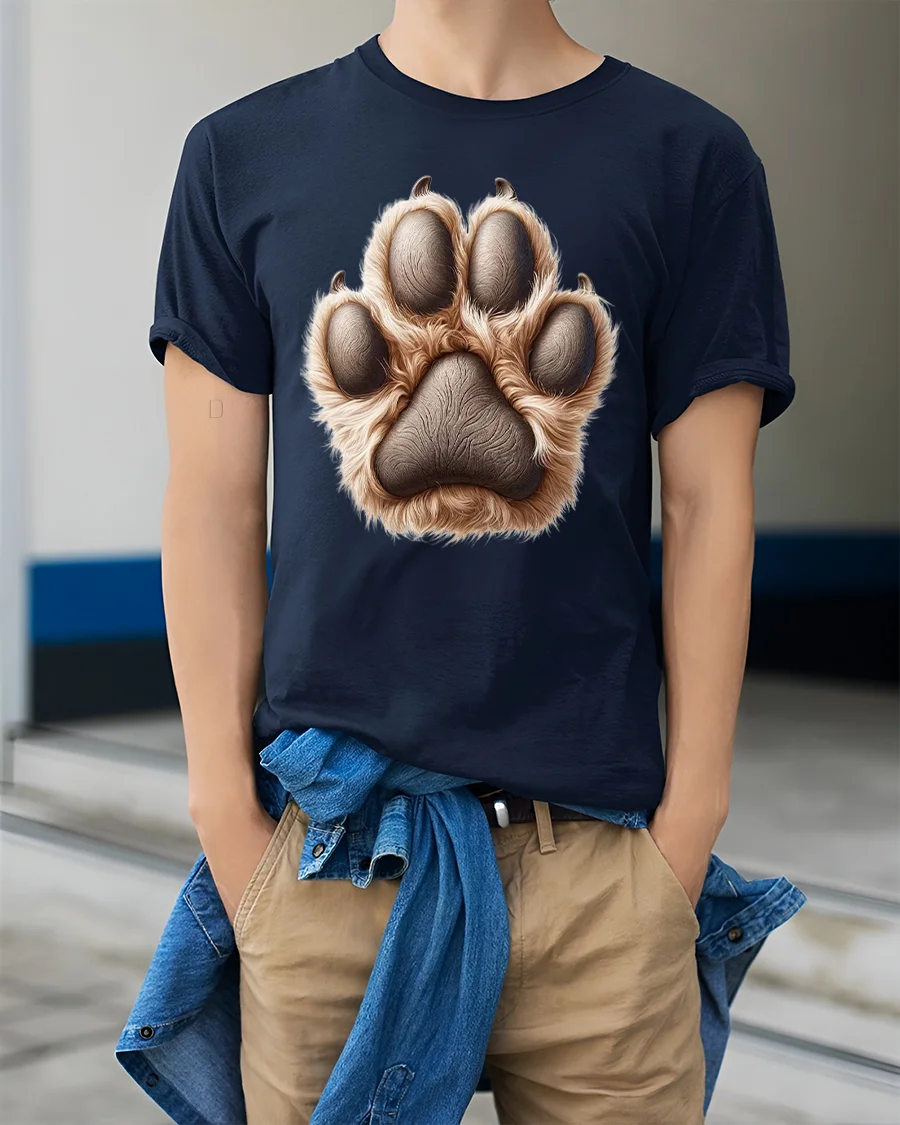 Realistic Animal Paw Print Fur Texture Graphic Tee Shirt features a highly detailed paw design that looks soft lifelike and incredibly expressive.