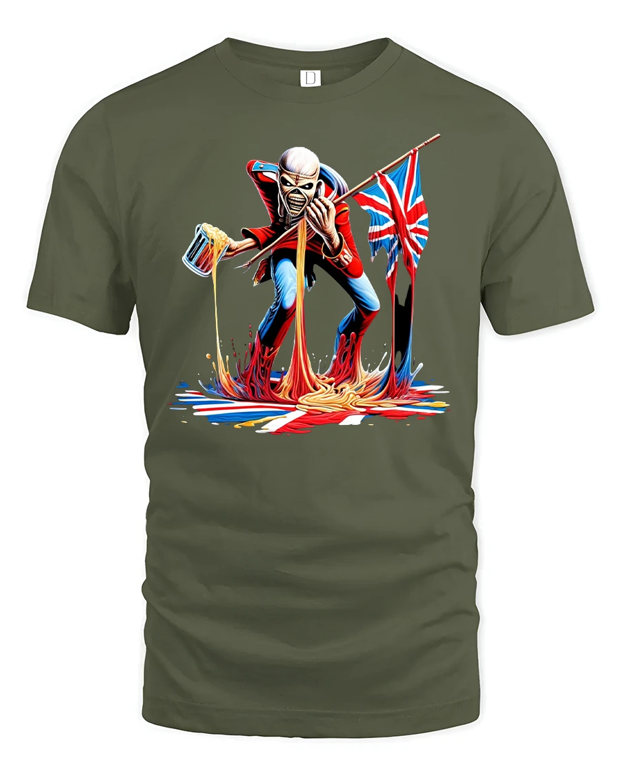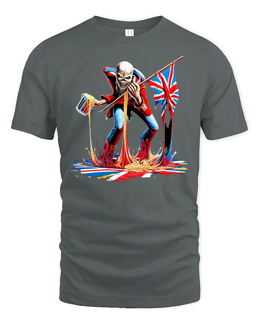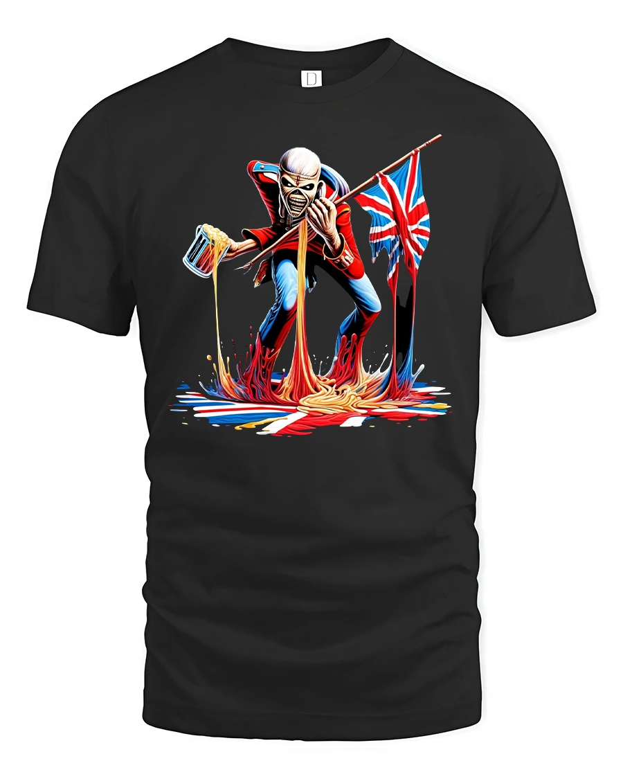 The Rebel Punk Warrior Pouring Beer With British Flag Graphic Tee Shirt delivers raw attitude and bold street art energy.