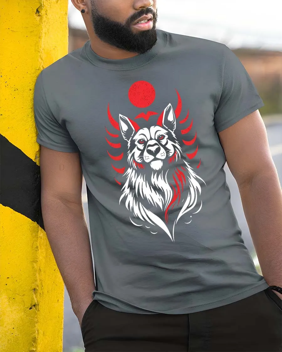 The balanced modern graphic style makes this Red Moon Wolf Spirit Graphic t-shirt Premium Feel Style stand out in any wardrobe.