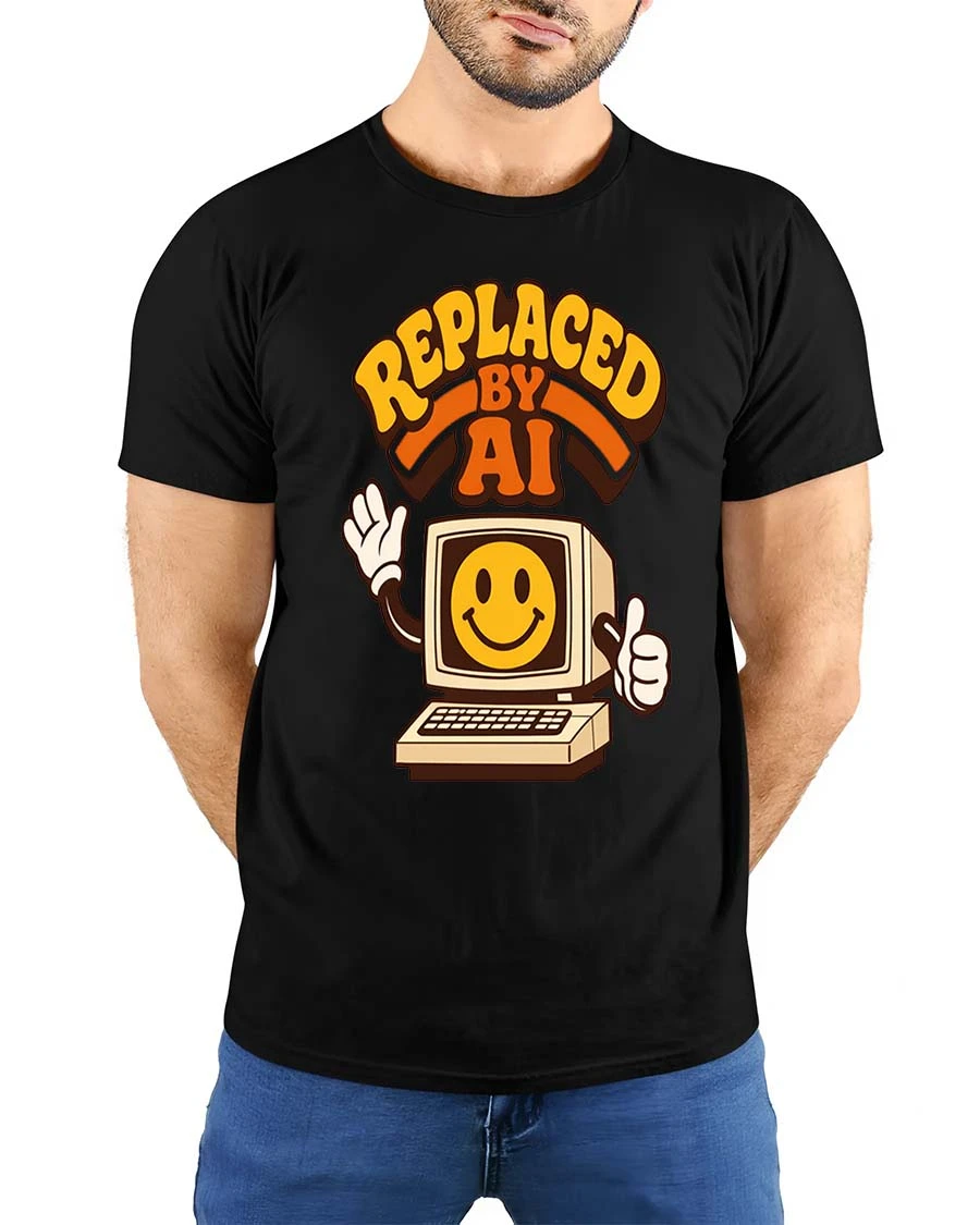 Replaced By AI Retro Computer Humor Graphic T-Shirt Style is a great choice for those who enjoy technology themed humor and creative expression.