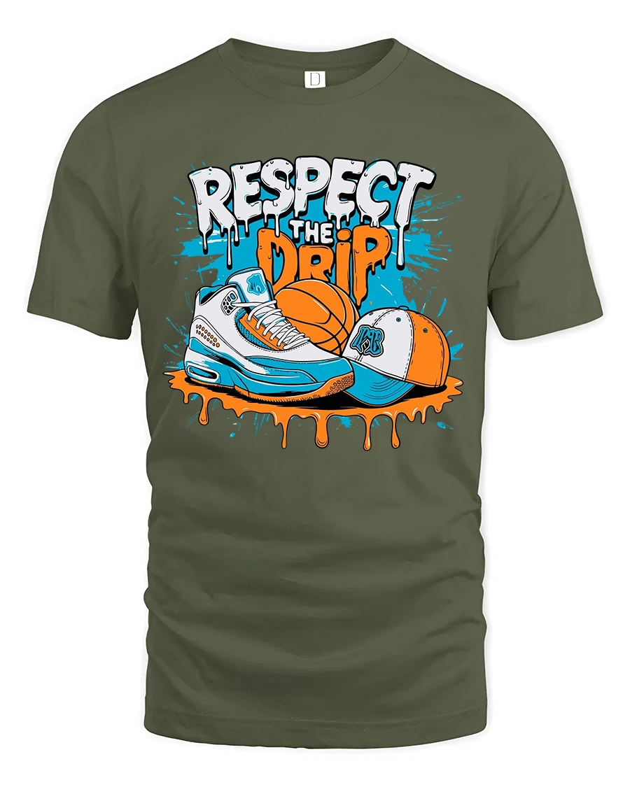 Respect The Drip Streetwear Sneaker Art Graphic T Shirt - military green t-shirt on white background