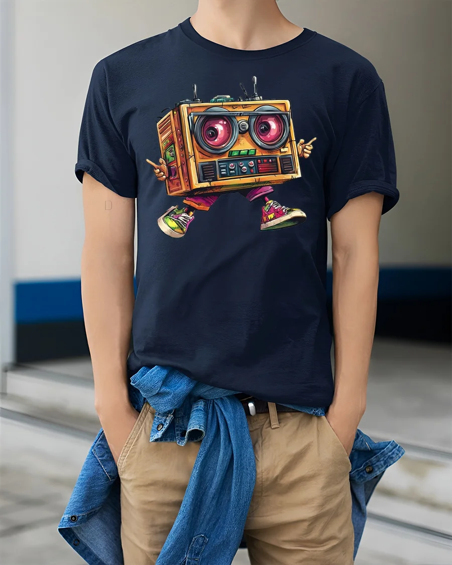Retro Boombox Cartoon Tee for Music Lovers brings funky nostalgia and street style together in one bold design.