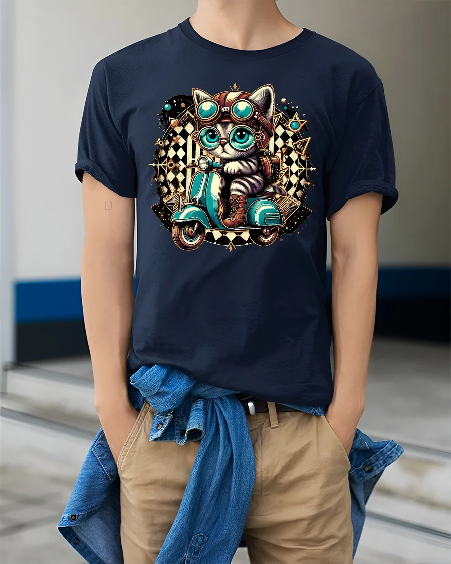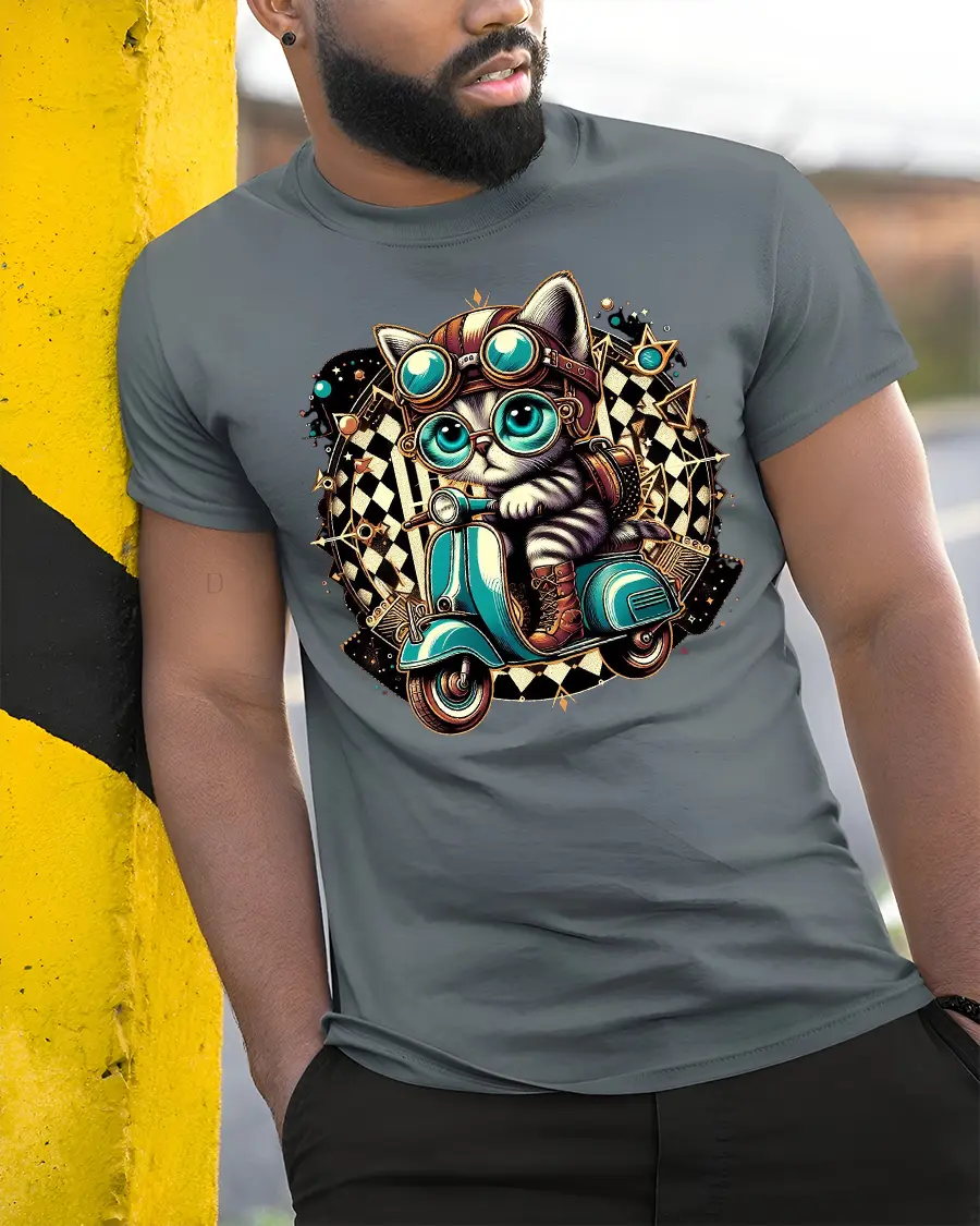 Perfect for birthdays, holidays, or simply treating yourself, this kitten riding scooter tee is a must-have for fans of unique graphic apparel. Pair it with jeans, shorts, or a casual jacket to let the design pop and show off your fun personality.
