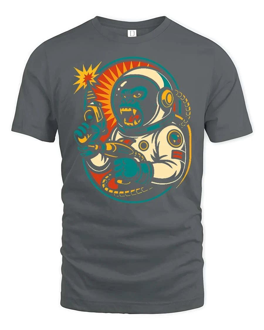 Retro Space Gorilla Laser Gun Graphic t-shirt Premium delivers bold retro science fiction style with a powerful illustrated astronaut gorilla design.
