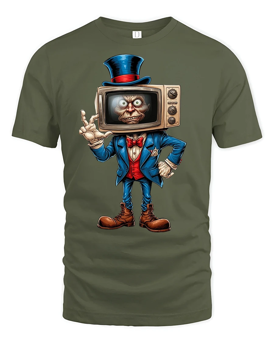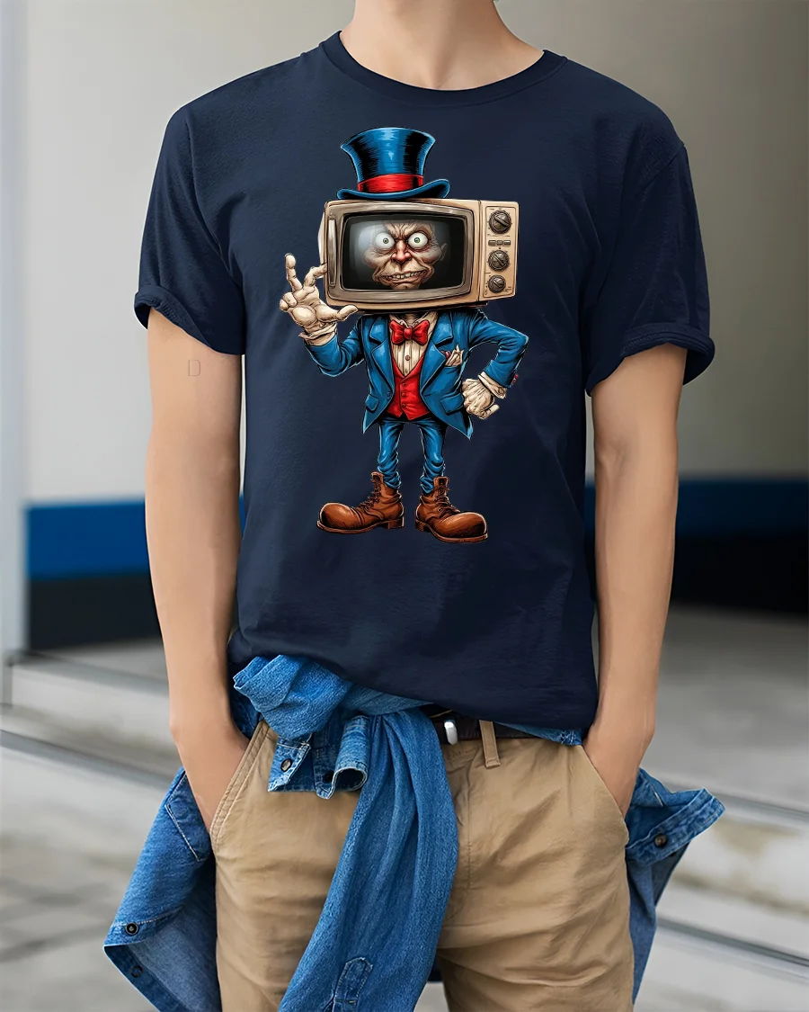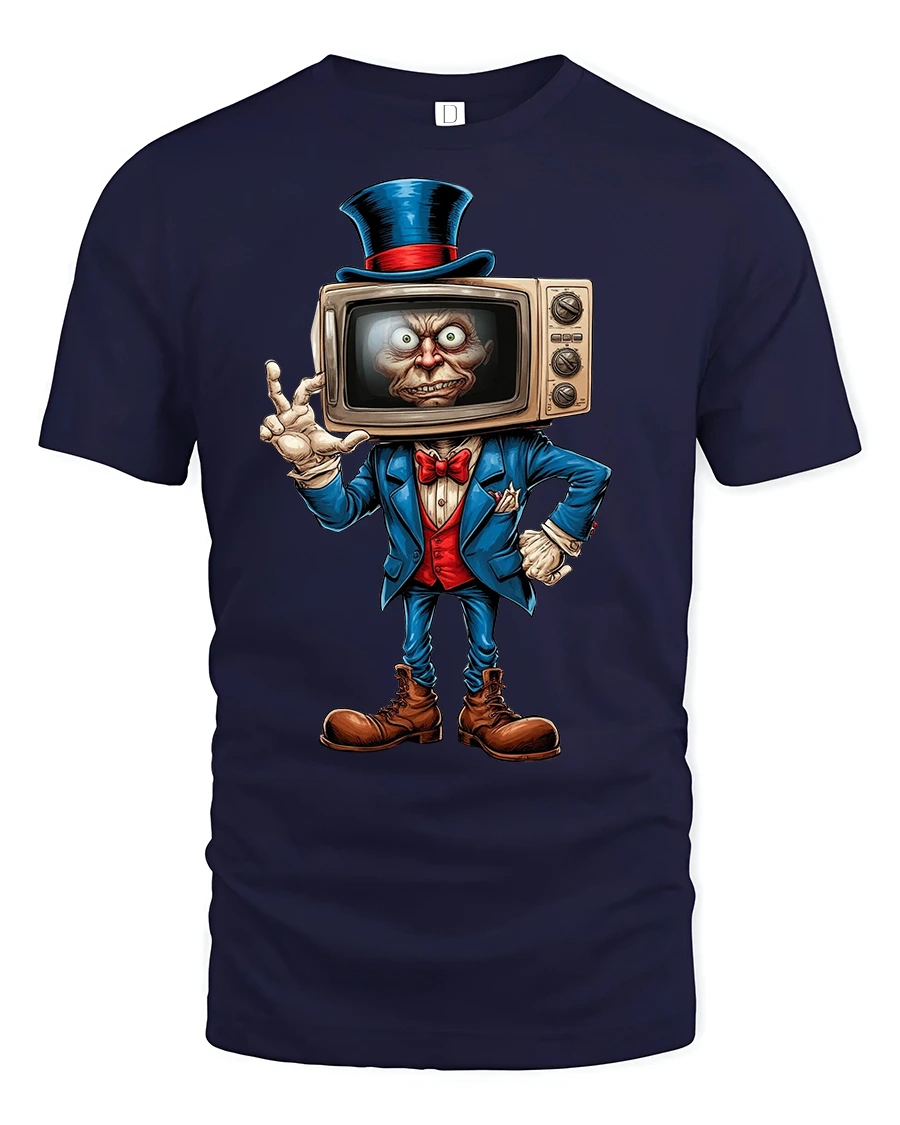 Retro TV Head Creepy Cartoon Character T-shirt is the perfect mix of vintage vibes, streetwear edge, and creepy humor. Featuring a bold illustration of a man in a sharp suit with an old-school television for a head, this design instantly grabs attention. The detailed graphic has a mix of retro cartoon and horror style, making it a standout piece for anyone who loves unique and artistic tees.