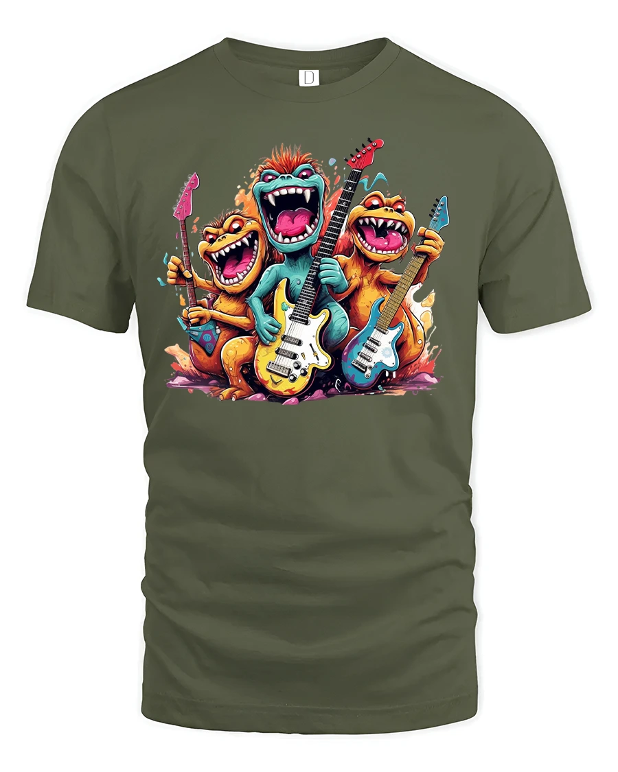 Rock Band Monster Graphic Funny Guitar Printed T-Shirt brings a wild burst of energy, humor, and music to your style. Featuring three hilarious cartoon monsters rocking out on electric guitars, this tee is perfect for music fans, festival lovers, and anyone with a fun personality. The colorful and detailed design captures the excitement of a live rock concert with a playful twist, making it a conversation starter wherever you go.