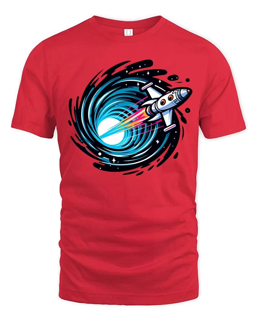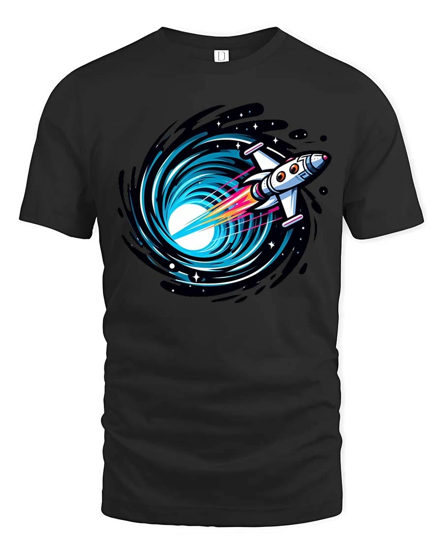 Rocket Into Black Hole Space Travel Sci Fi Graphic Tshirt captures the excitement of cosmic exploration through a bold and dynamic illustration.