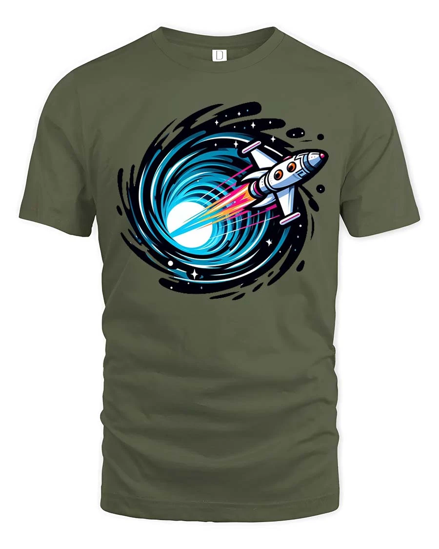 Rocket Into Black Hole Space Travel Sci Fi Graphic Tshirt is a unique addition to any graphic apparel collection.