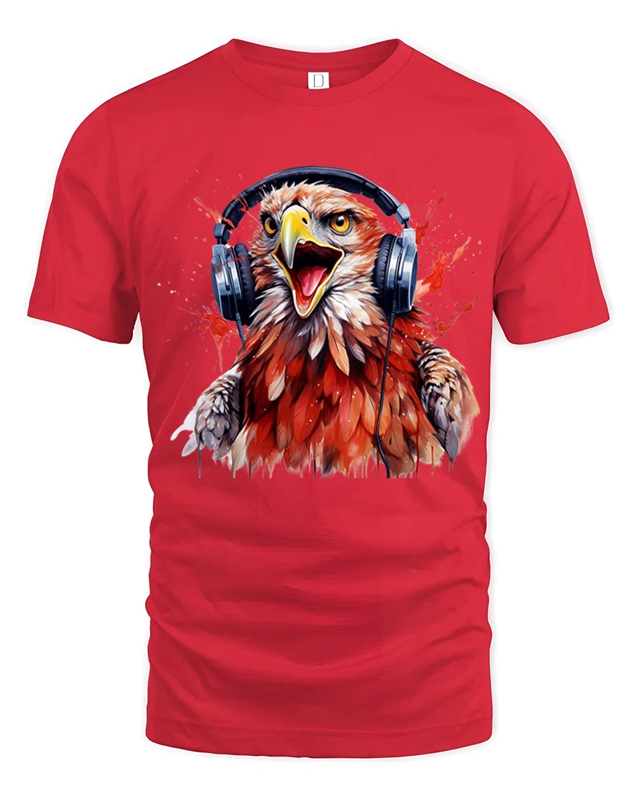 Rocking Eagle Headphones Art T Shirt celebrates individuality passion and creative expression through sound and art.
