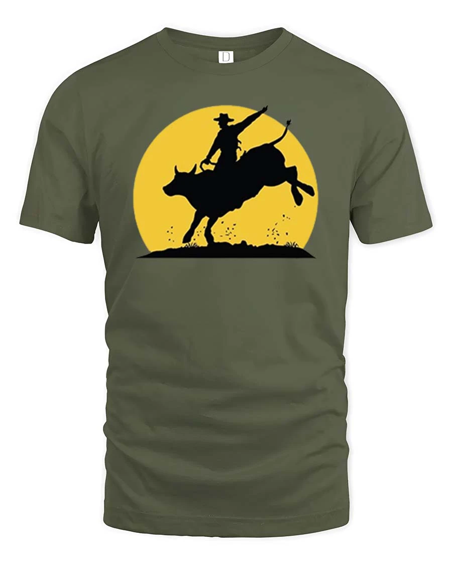 Rodeo Bull Riding Silhouette T-Shirt Western Cowboy Tee captures the thrill and intensity of classic rodeo culture.