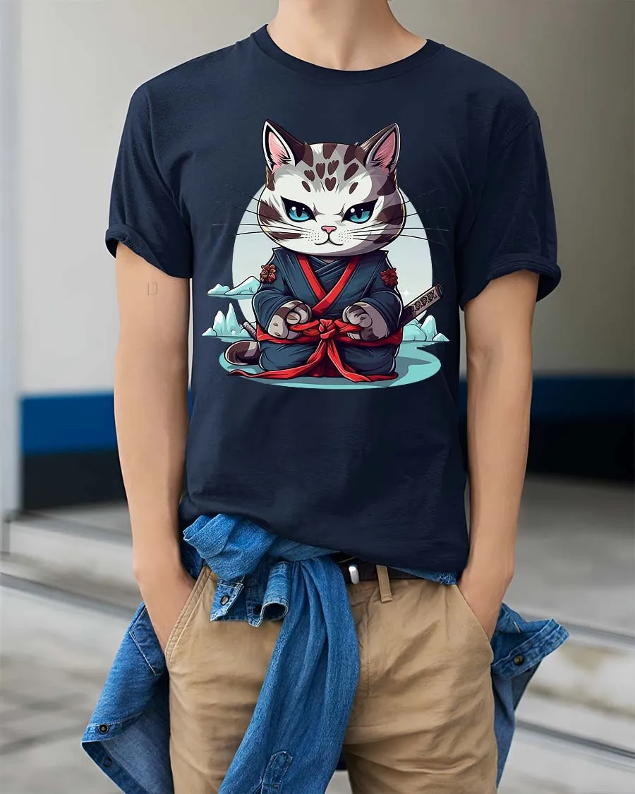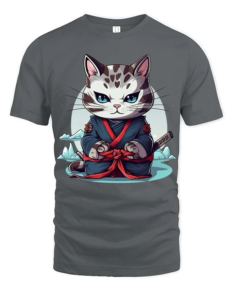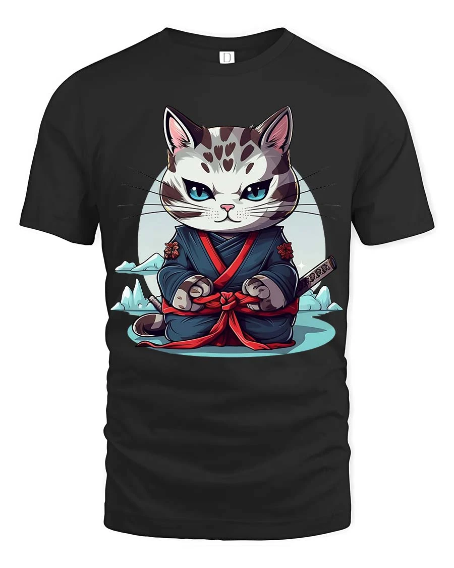 Featuring an adorable yet fierce samurai cat design, this t-shirt captures a unique balance between cute and powerful aesthetics that stands out effortlessly.