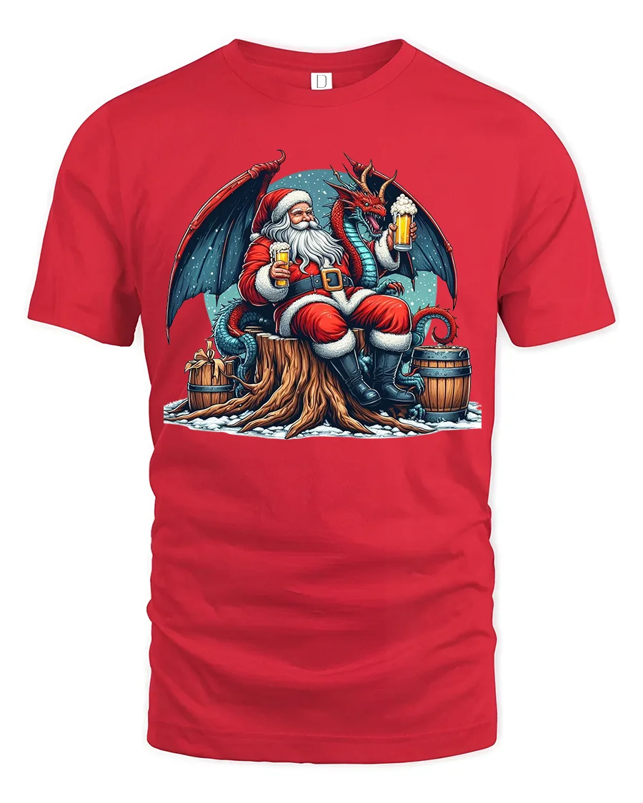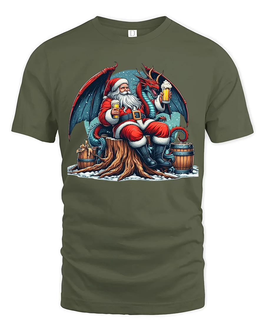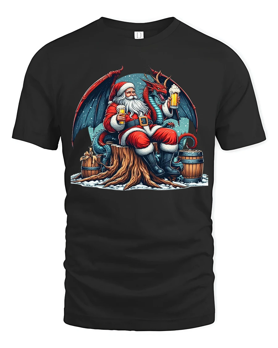 Santa And Dragon Beer Tee With Epic Fantasy Holiday Style combines holiday cheer with bold fantasy humor.