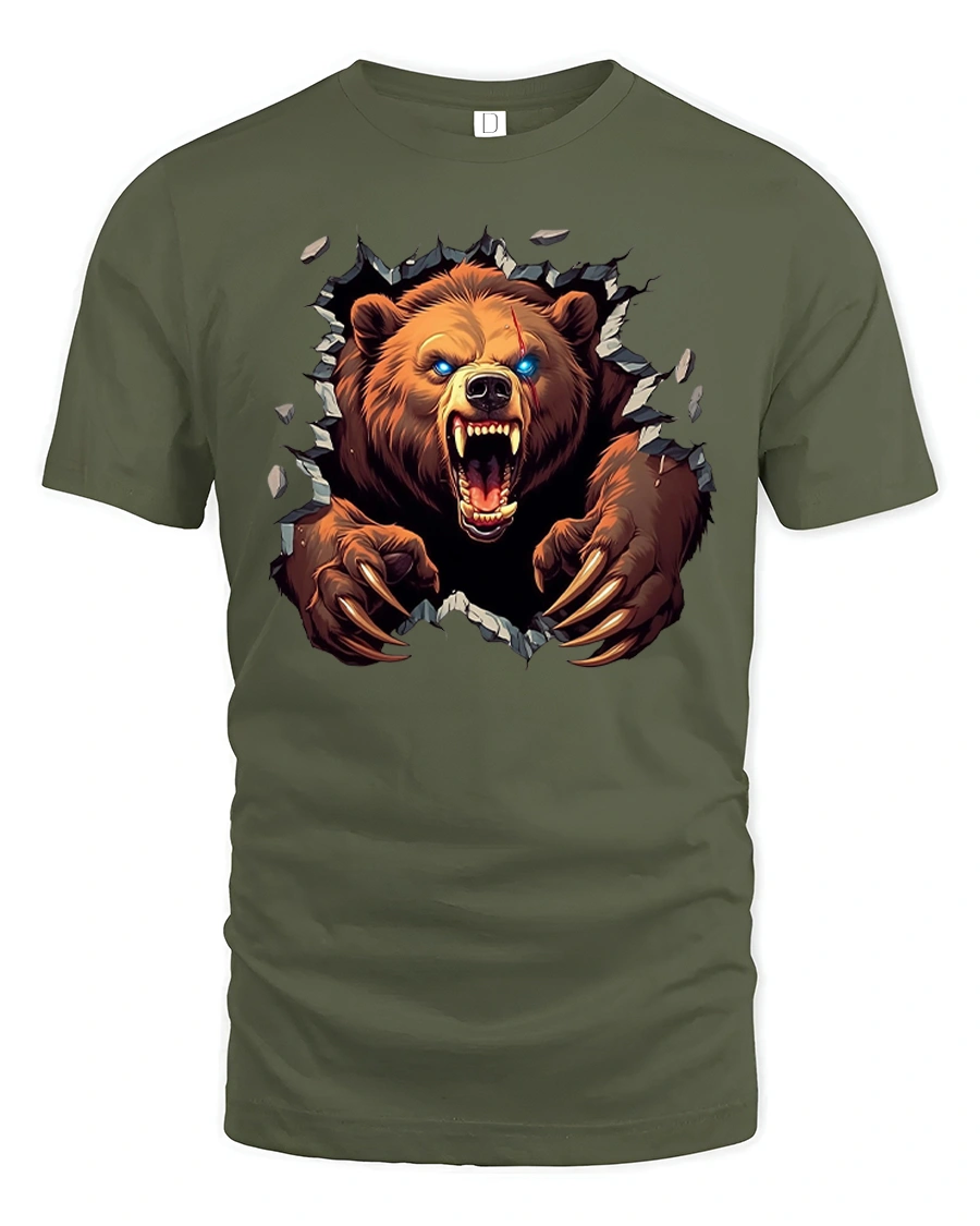 Savage Bear Breakthrough Claw Attack Graphic Tee for Men delivers raw power and intense energy for anyone who loves bold, fearless artwork. Featuring a roaring grizzly bear smashing through a cracked wall, this design captures strength, dominance, and the untamed spirit of the wild. The sharp claws, glowing eyes, and dynamic motion make this tee perfect for people who appreciate aggressive, high-impact graphic styles.