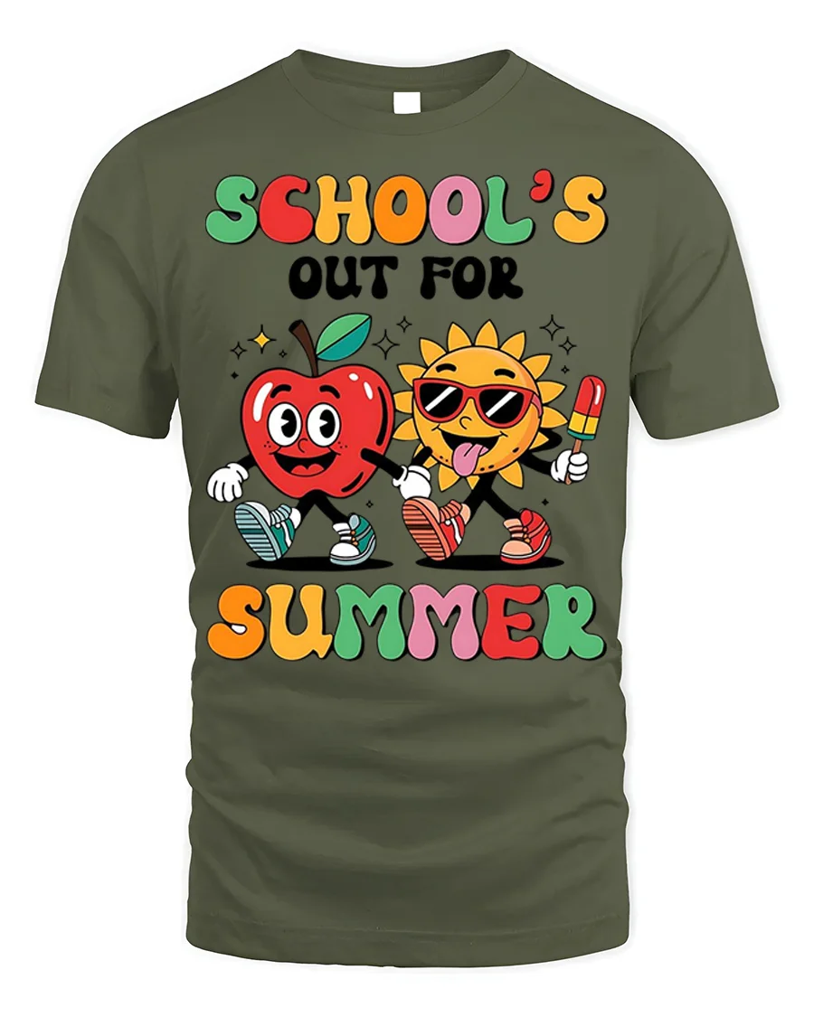 School’s Out For Summer Apple Sun T-Shirt - military green t-shirt on white background