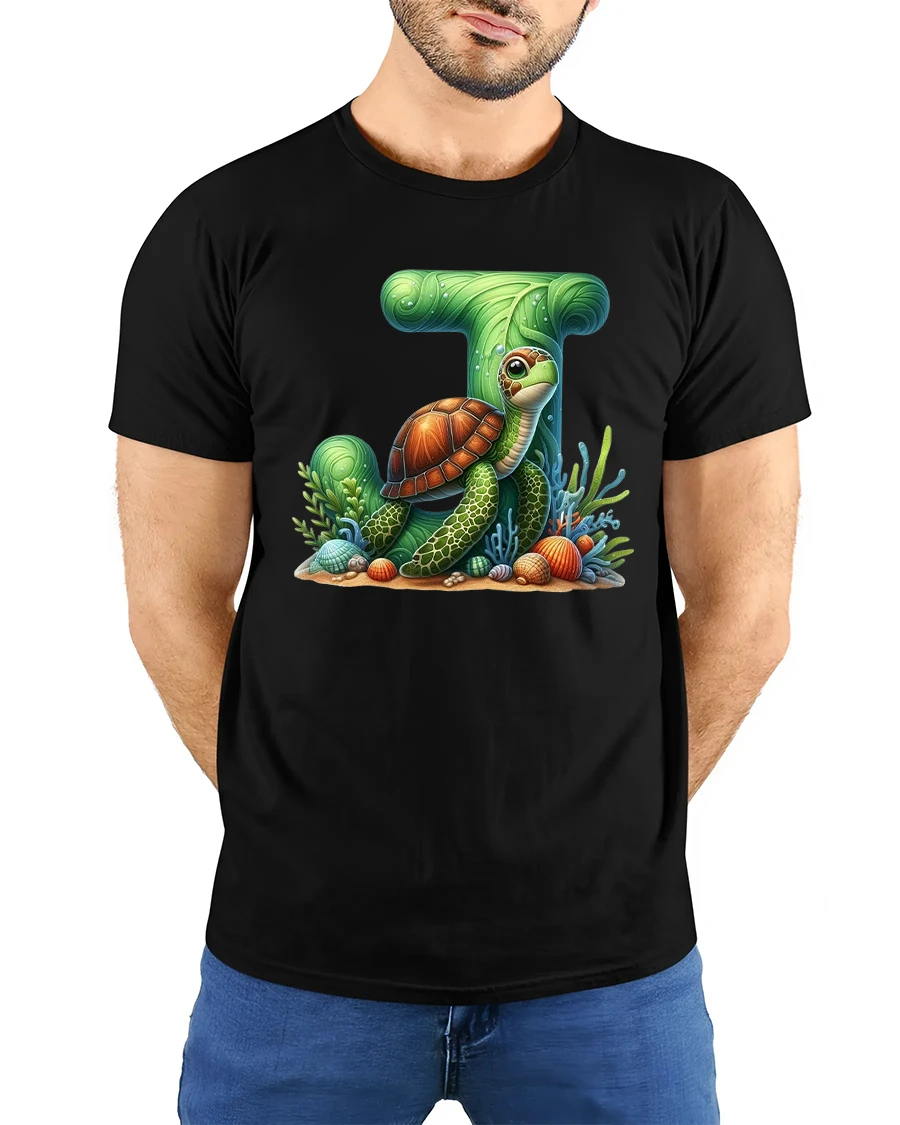 Sea Turtle Letter T Ocean Inspired Illustration Graphic Tee brings a creative blend of marine life and typography into one unique design.