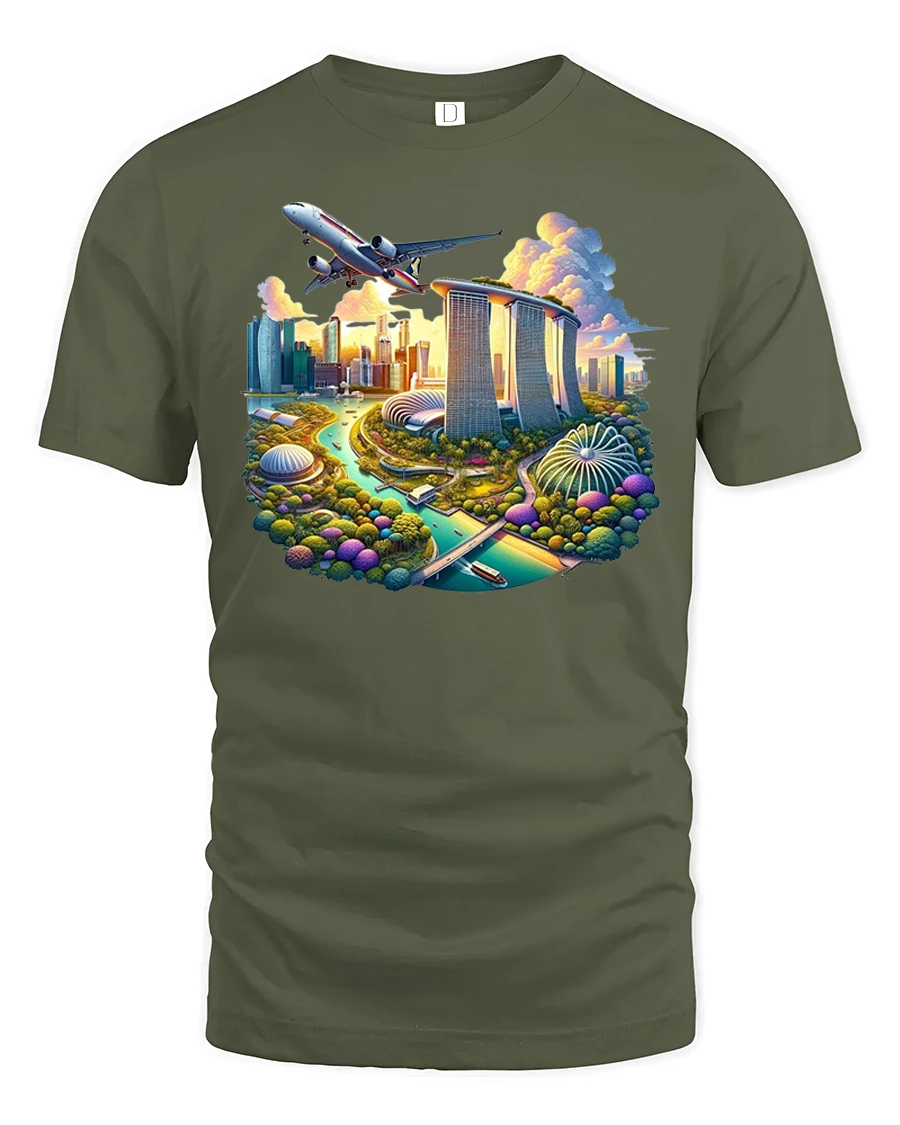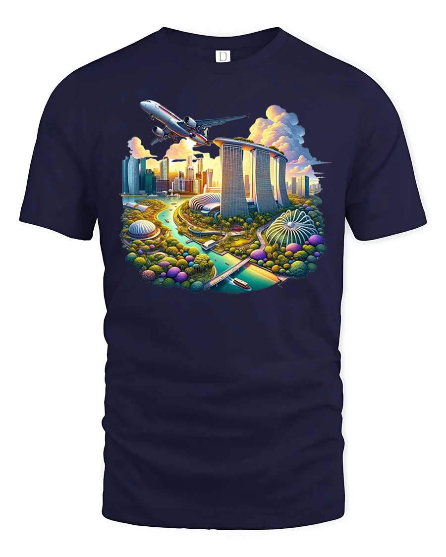 Singapore Skyline City Travel Airplane Graphic T-Shirt is a vibrant and eye-catching design perfect for travelers, city lovers, and fans of iconic skylines. Featuring Singapore’s Marina Bay Sands, Gardens by the Bay, and Supertree Grove with a dramatic airplane flying overhead, this tee captures the excitement of global travel and the beauty of one of Asia’s most famous destinations.