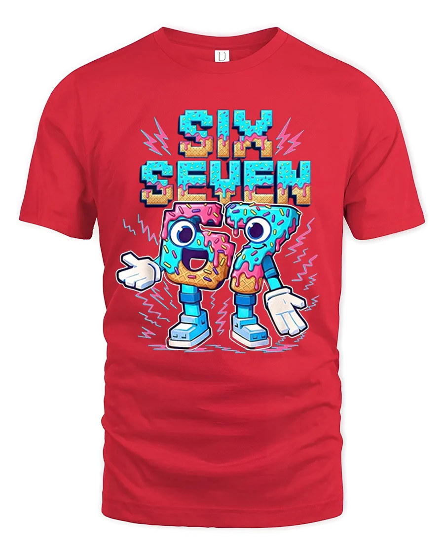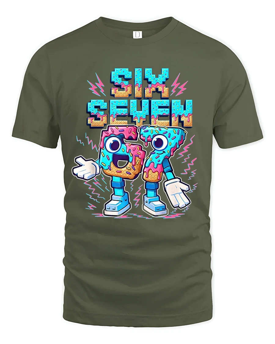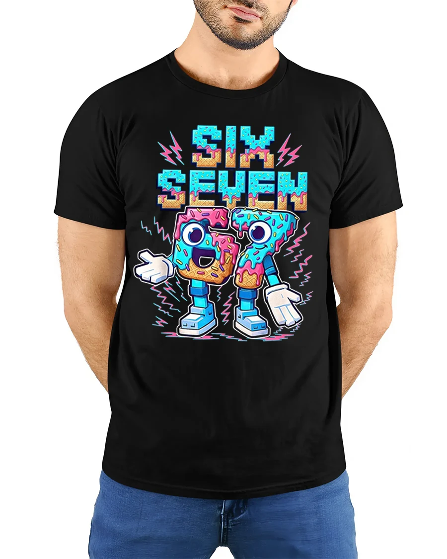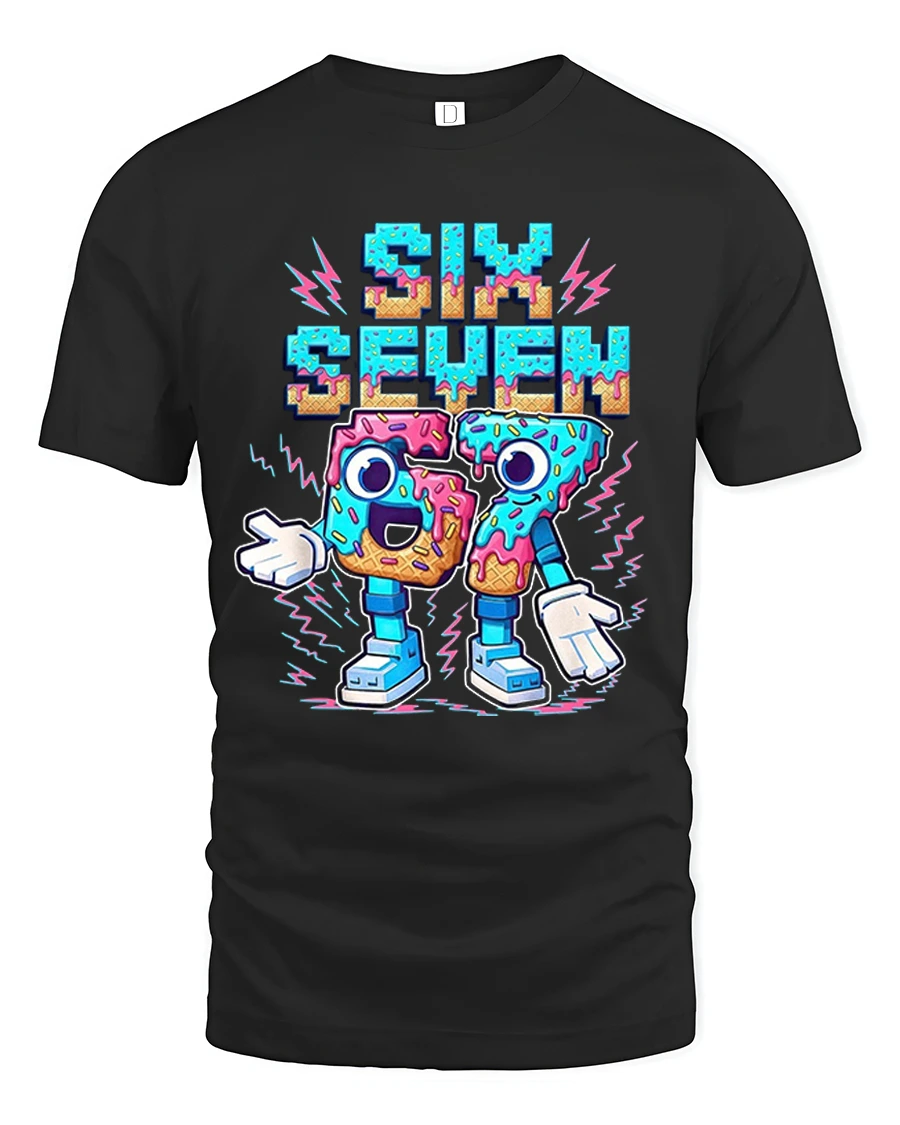 This Six Seven tshirt features a bold and playful donut inspired graphic that instantly grabs attention with its colorful cartoon style and fun personality.
