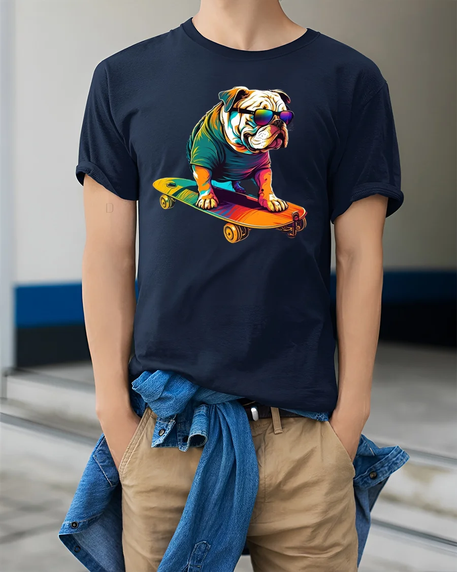 Made from soft, breathable fabric, this bulldog skateboard t-shirt is perfect for casual wear, skating sessions, or hanging out with friends. Its fun and quirky vibe makes it an excellent choice for dog lovers, skateboard enthusiasts, and anyone who enjoys playful, eye-catching fashion.