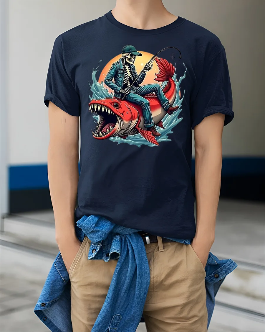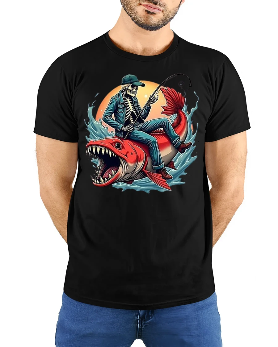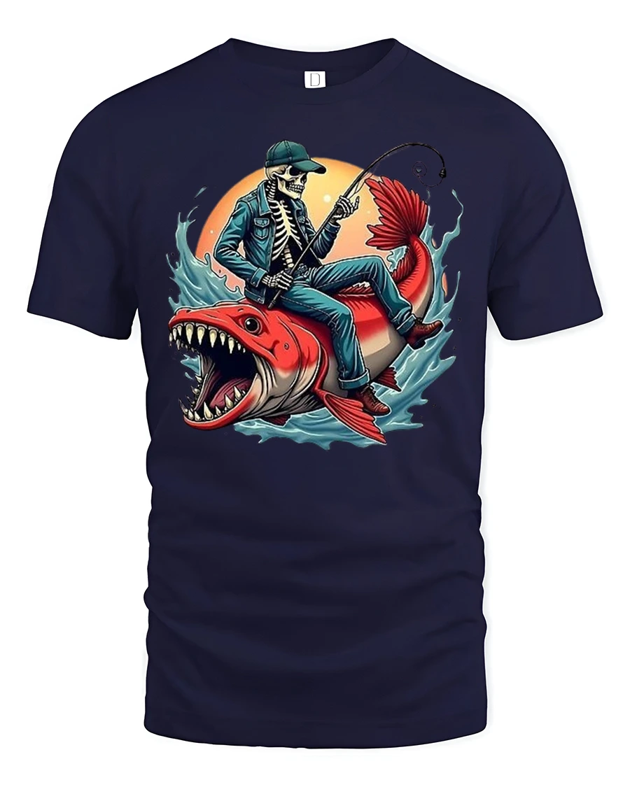 Skeleton Fisherman Riding Monster Fish Graphic Tee is the perfect choice for anyone who loves bold designs, fishing humor, and unique art styles. Featuring a skeleton fisherman riding a giant monster fish, this tee combines adventure, comedy, and a touch of the macabre in one epic design. It’s ideal for fishing fans, skeleton art lovers, or anyone who enjoys standout graphic t-shirts.