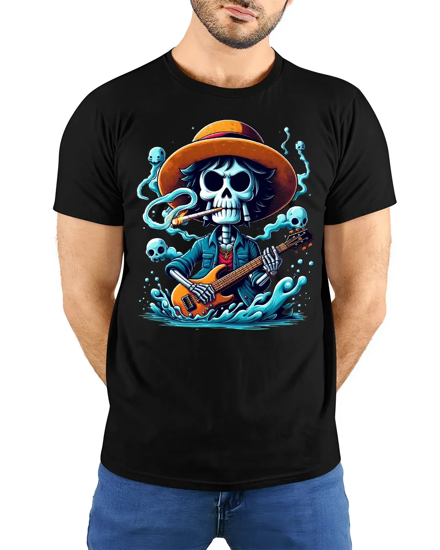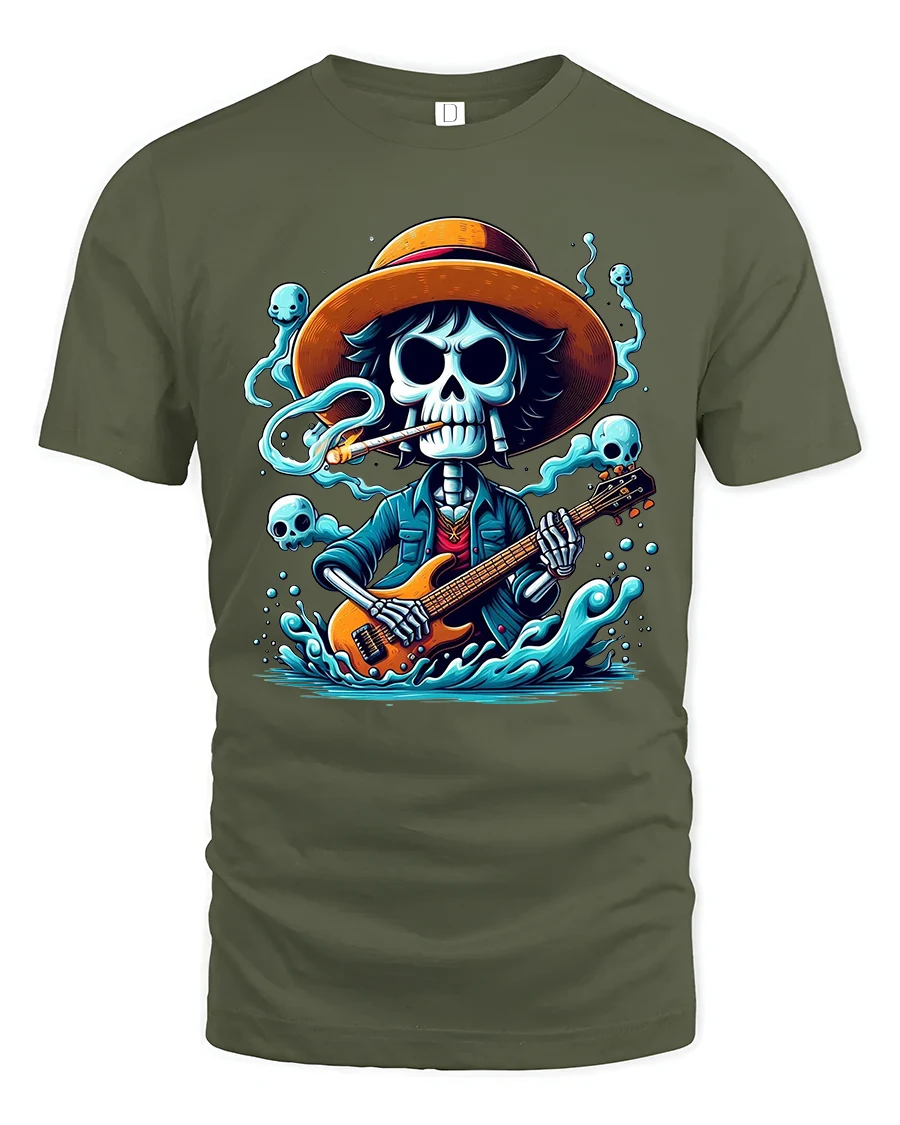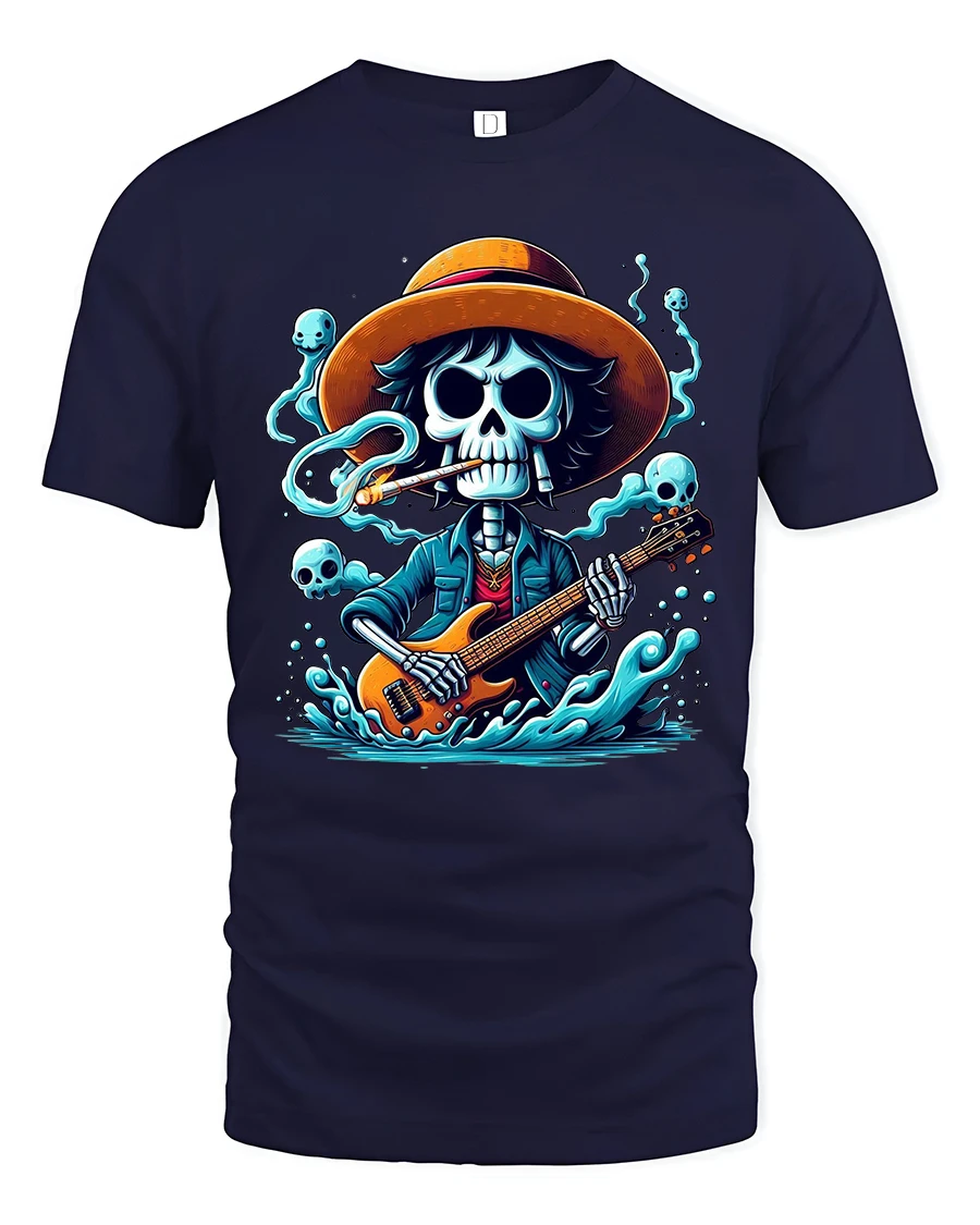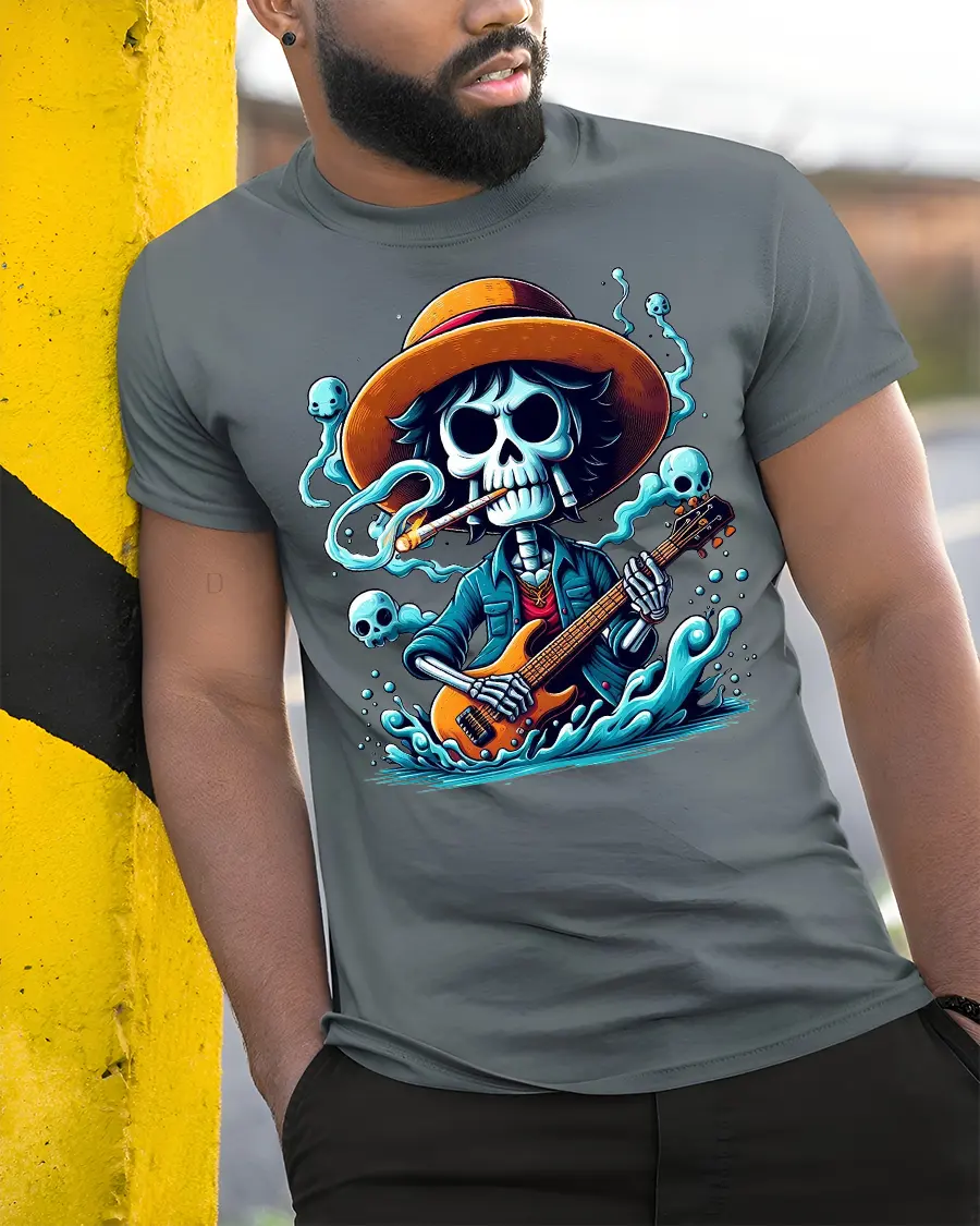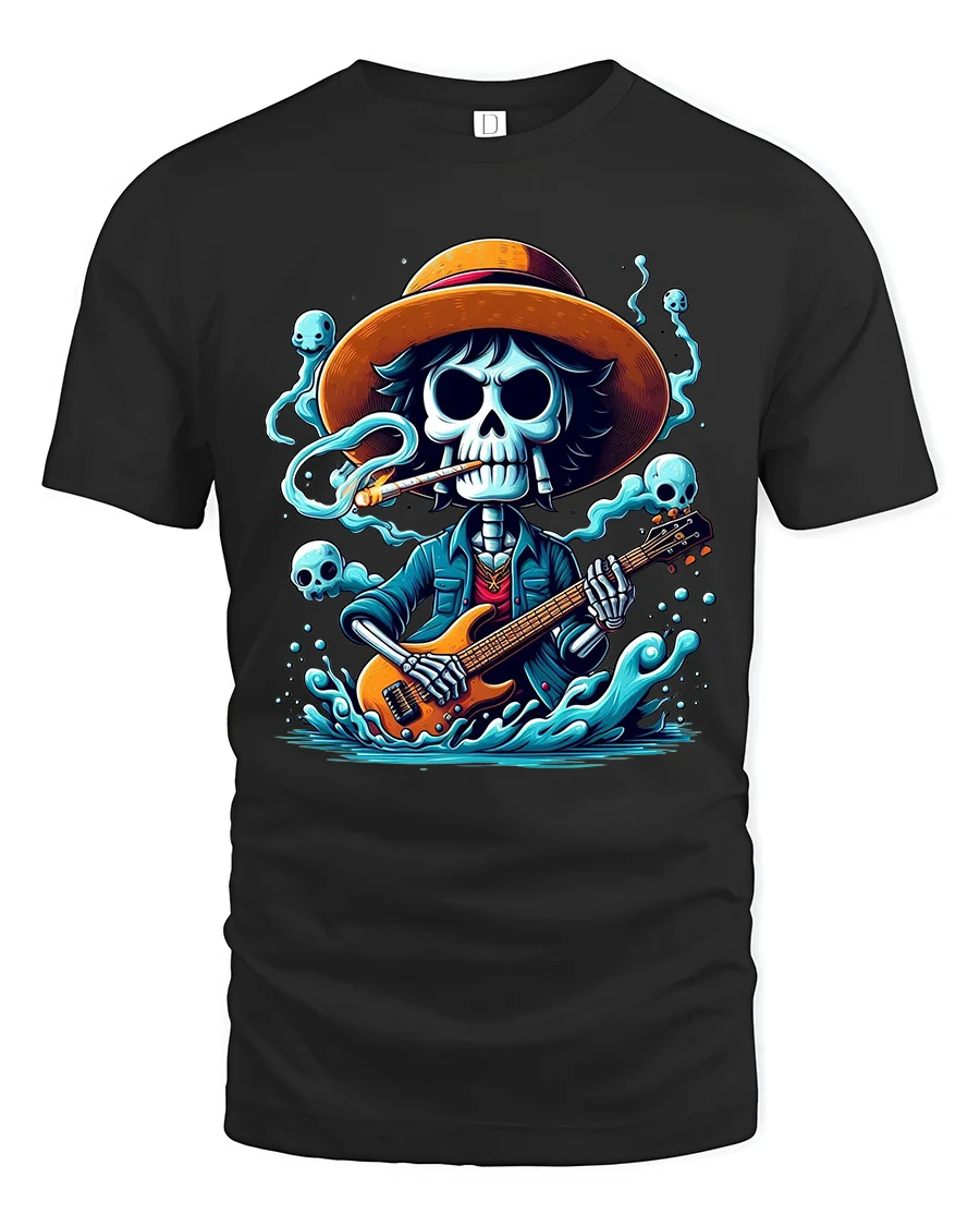 Skeleton Guitarist Rock Spirit Graphic Tee With Dark Music Vibes is perfect for those who love music art and bold style.
