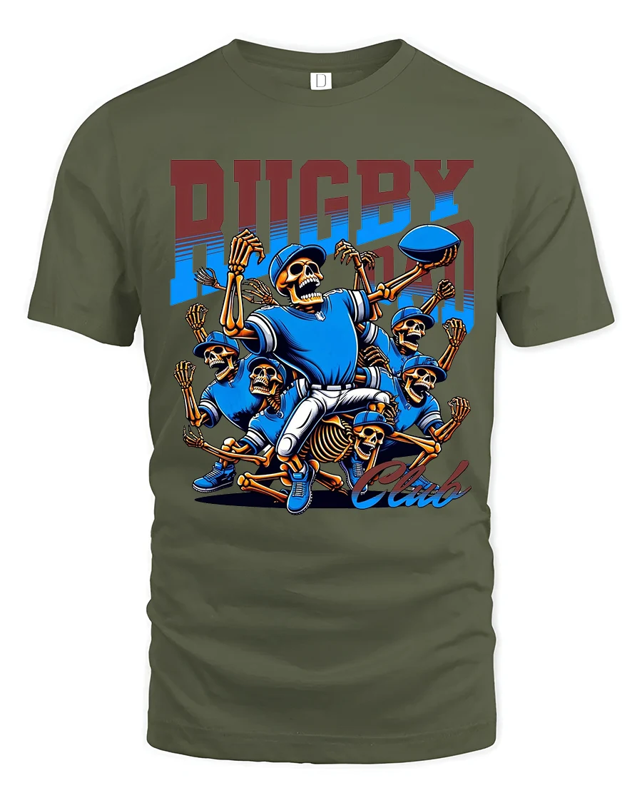 Printed on soft comfortable fabric, this tee combines sporty attitude with playful creativity, making it great for casual wear, game days or anytime you want to show off a unique sense of humor. The detailed skeleton characters and energetic movement add a standout look that appeals to rugby enthusiasts and lovers of bold graphics.