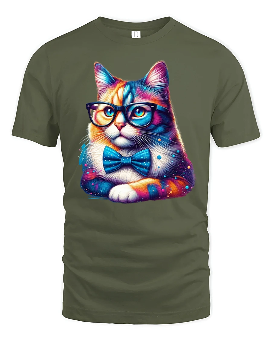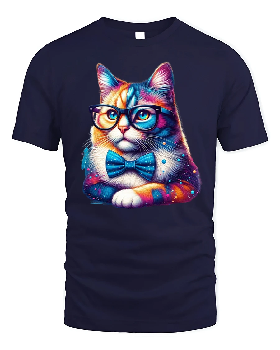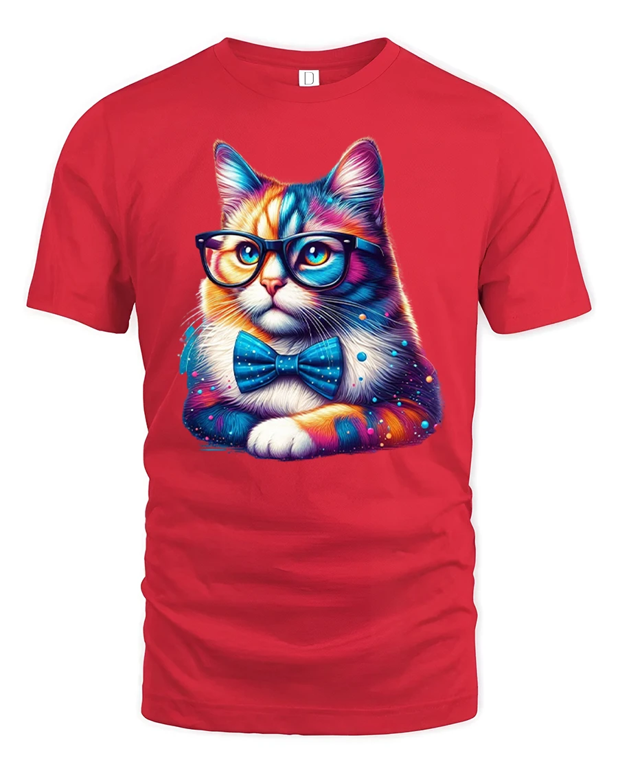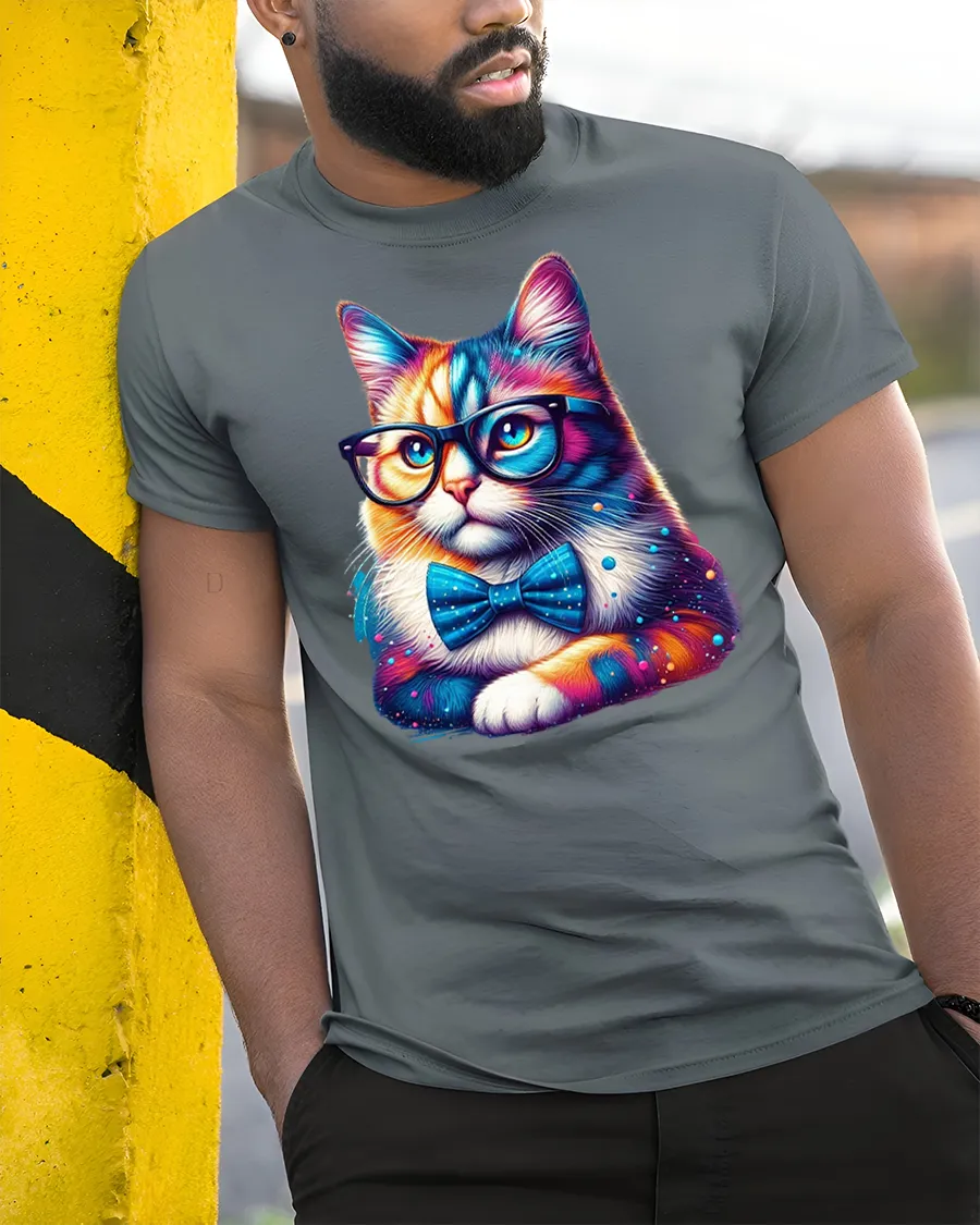 Smart Cat Glasses Bow Tie Colorful Print T-shirt is the ultimate blend of humor, style, and love for cats. Featuring a vibrant and adorable kitty wearing oversized glasses and a classy bow tie, this tee is perfect for cat lovers with a playful sense of fashion. The bold colors and detailed design make it a standout piece for any casual outfit.