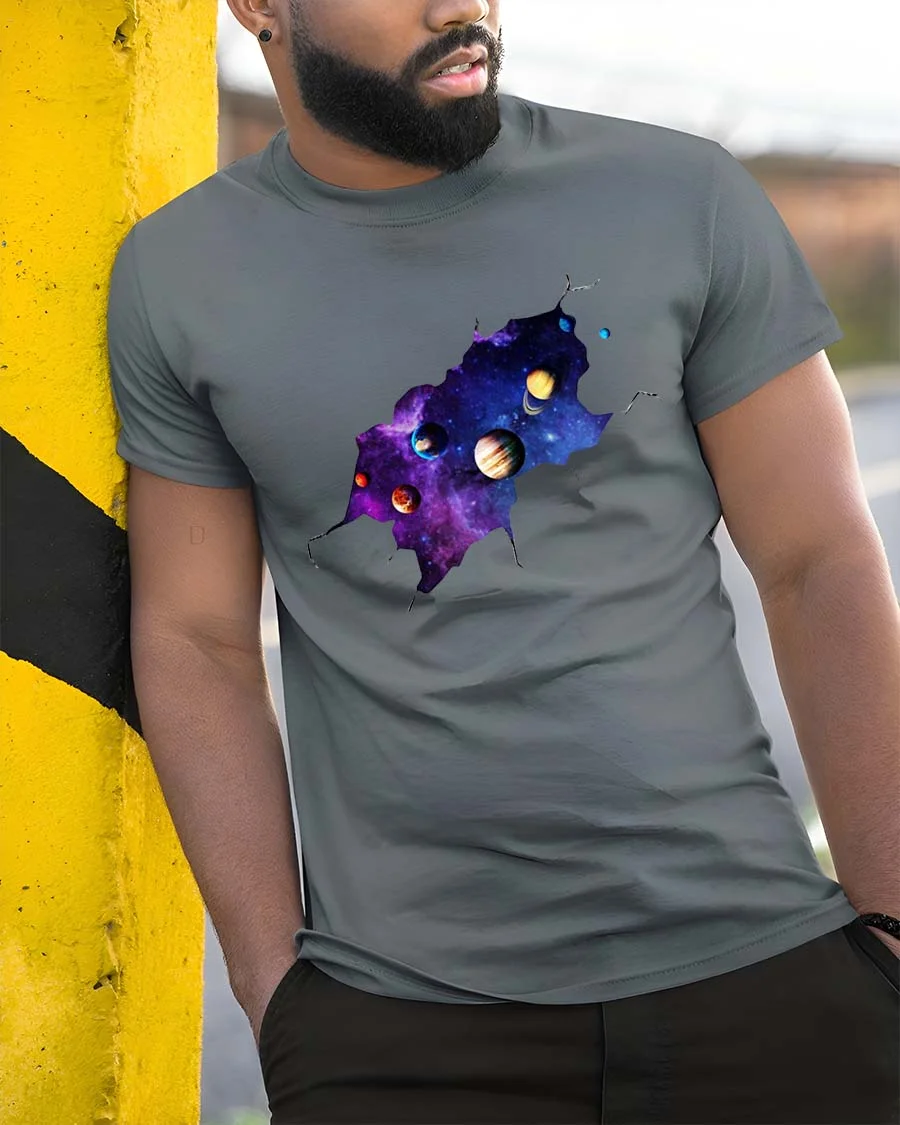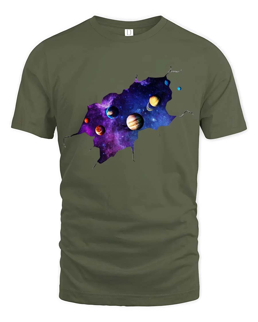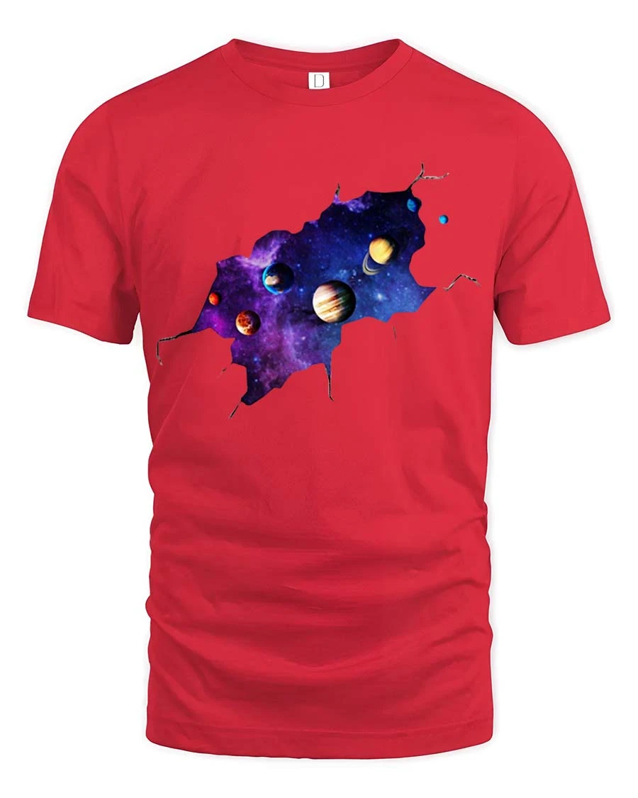 The creative artwork gives the illusion of a tear in space revealing the solar system, making this tee both eye-catching and unique.