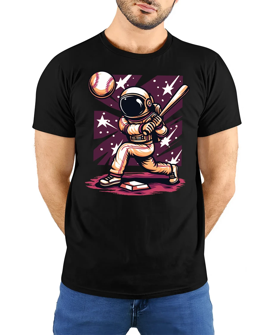 Crafted with soft, breathable fabric, this astronaut baseball t-shirt provides comfort while standing out with its vibrant and eye-catching design. The high-quality print ensures lasting colors, making it perfect for daily wear, baseball games, comic conventions, or casual hangouts. Pair it with jeans, shorts, or joggers to create a fun and sporty look.