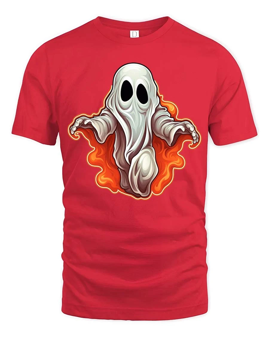 Spooky Cute Ghost Flame Graphic t-shirt Funny Halloween Tee - red t-shirt on white background