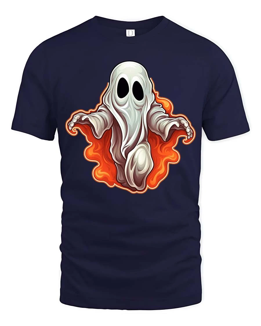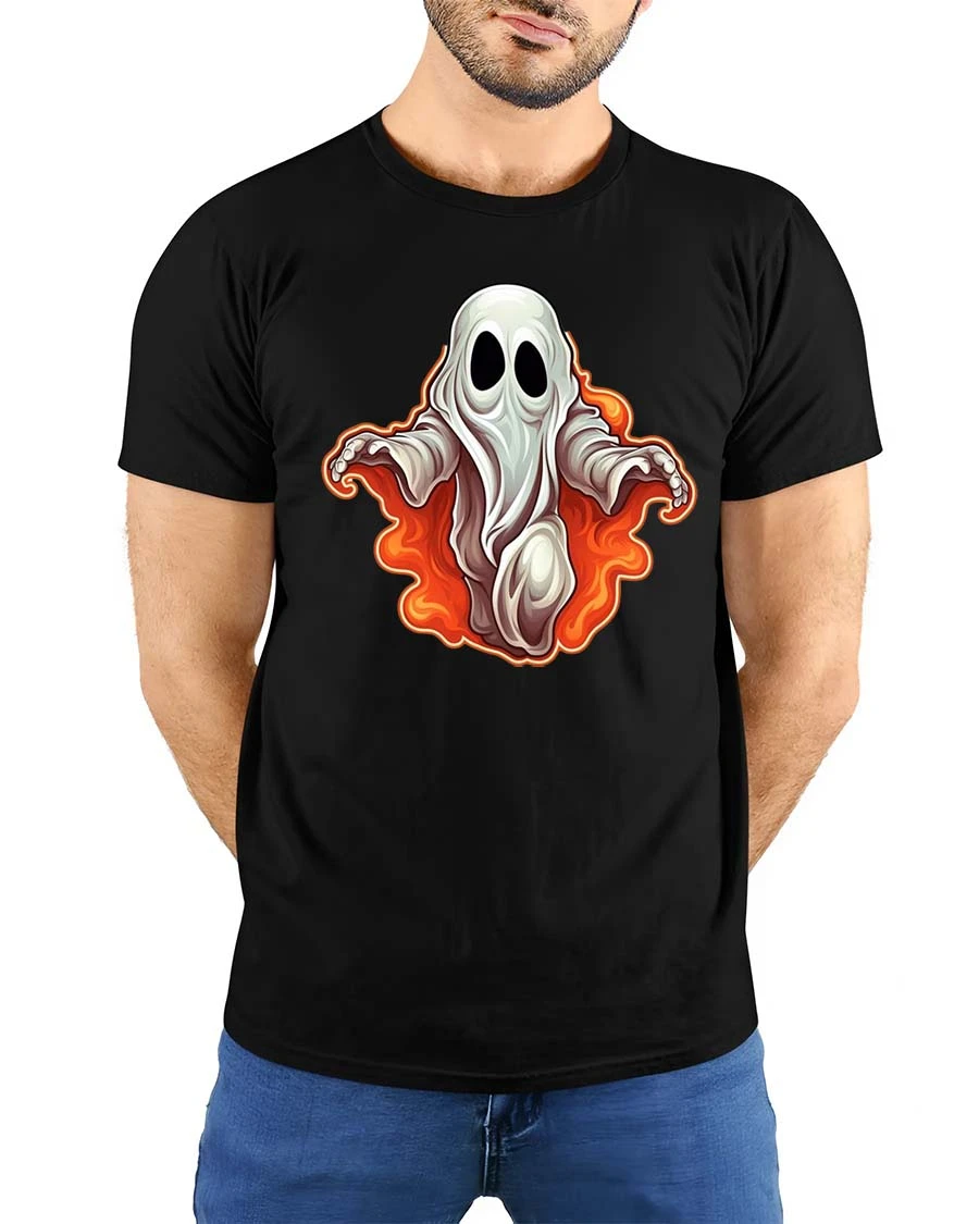 Spooky Cute Ghost Flame Graphic t-shirt Funny Halloween Tee delivers the perfect mix of playful charm and spooky style.