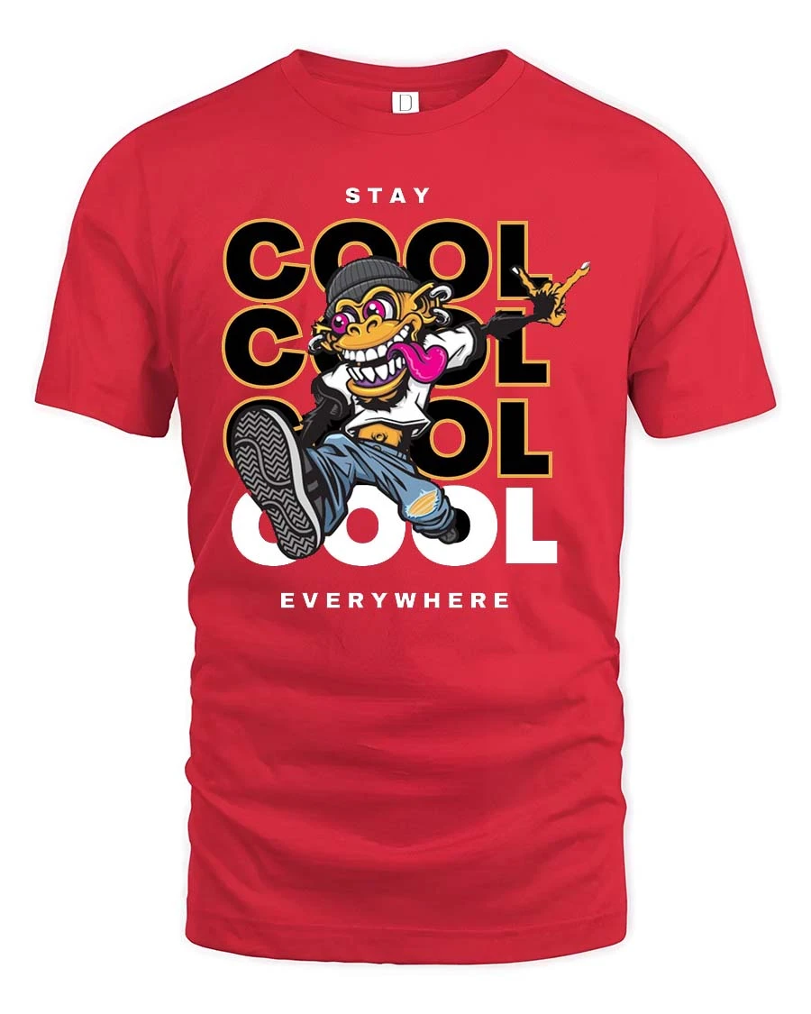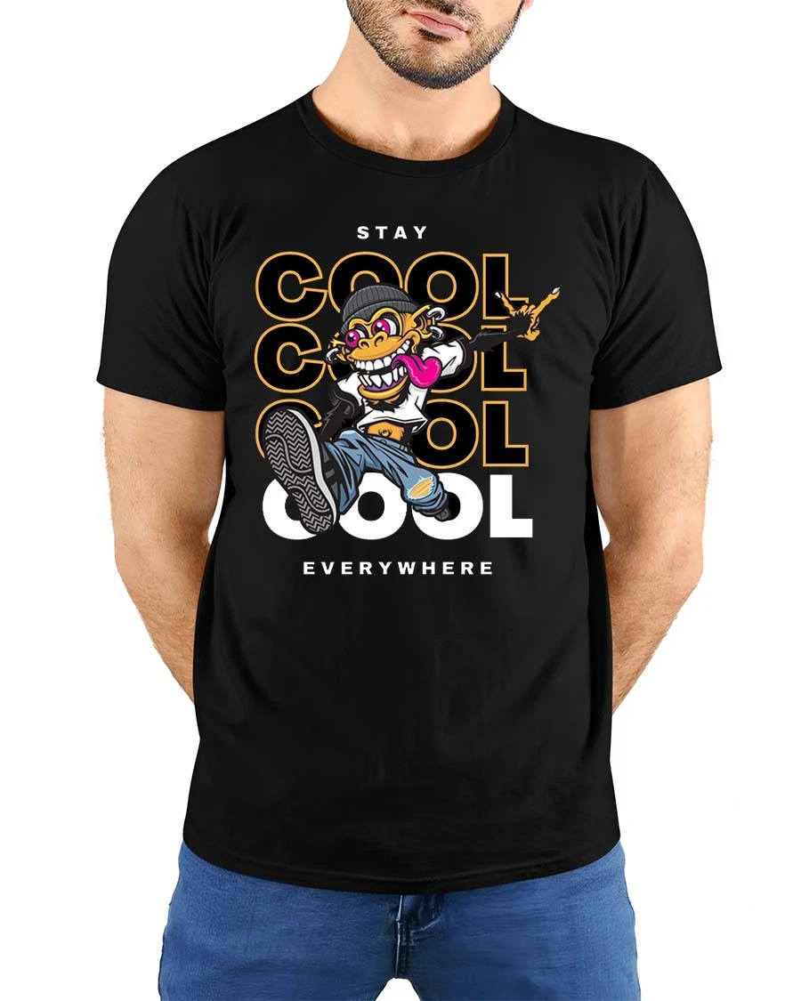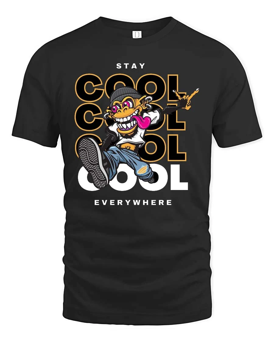 Stay Cool Monkey T-Shirt Street Style Graphic Urban Tee is a bold and trendy design that captures the essence of modern streetwear fashion. Featuring a dynamic cartoon monkey in a cool urban outfit with eye-catching “Stay Cool Everywhere” typography, this t-shirt brings attitude and personality to your everyday look. The vibrant artwork and layered text design make it a standout piece for anyone who loves expressive and edgy fashion.