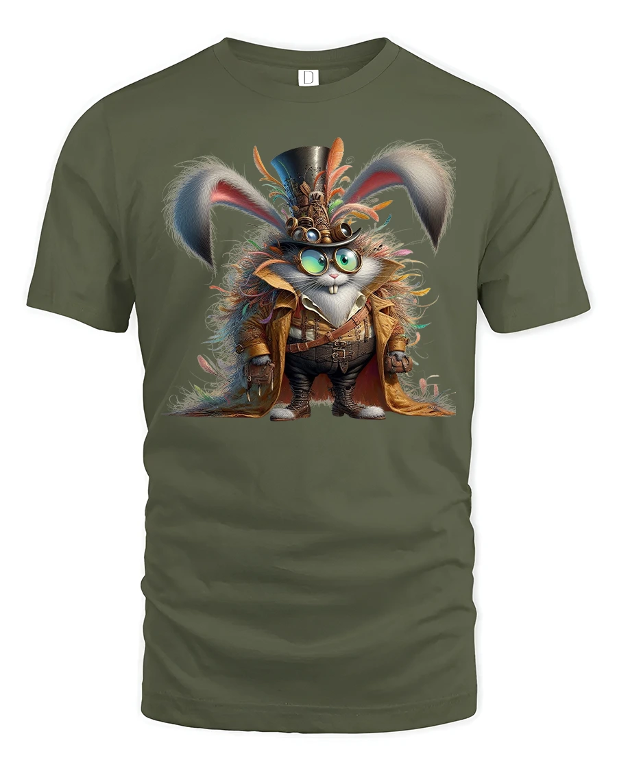 Steampunk Bunny Adventurer Tee with Fantasy Gear Artwork delivers a fun and imaginative twist to any outfit. The design features a quirky rabbit character dressed in detailed steampunk gear, complete with goggles, feathers, and layered clothing that highlight a vibrant and creative personality. This playful fantasy illustration blends humor, charm, and artistic craftsmanship into a bold wearable statement that instantly grabs attention.