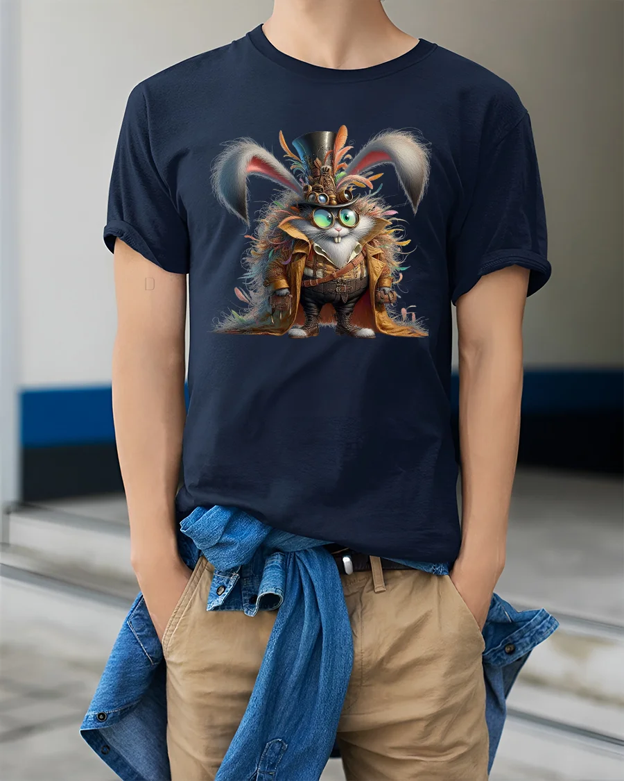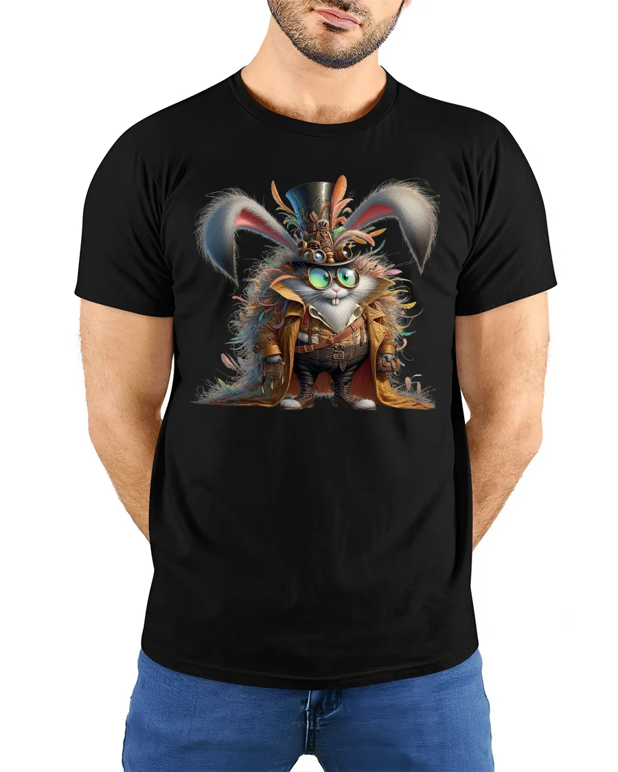 The Steampunk Bunny Adventurer Tee with Fantasy Gear Artwork offers a perfect combination of comfort and imaginative design. With its fun and adventurous vibe, it brings a refreshing touch to any wardrobe while showcasing a character full of charm and attitude.