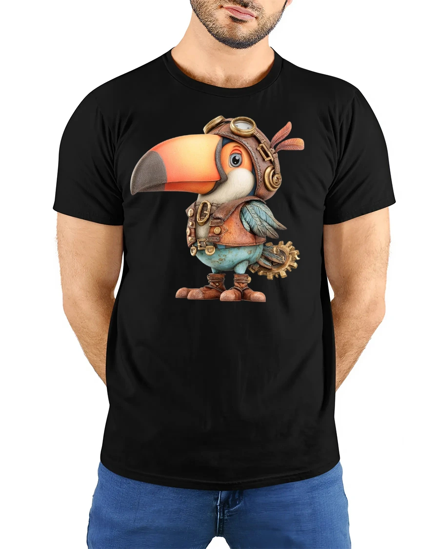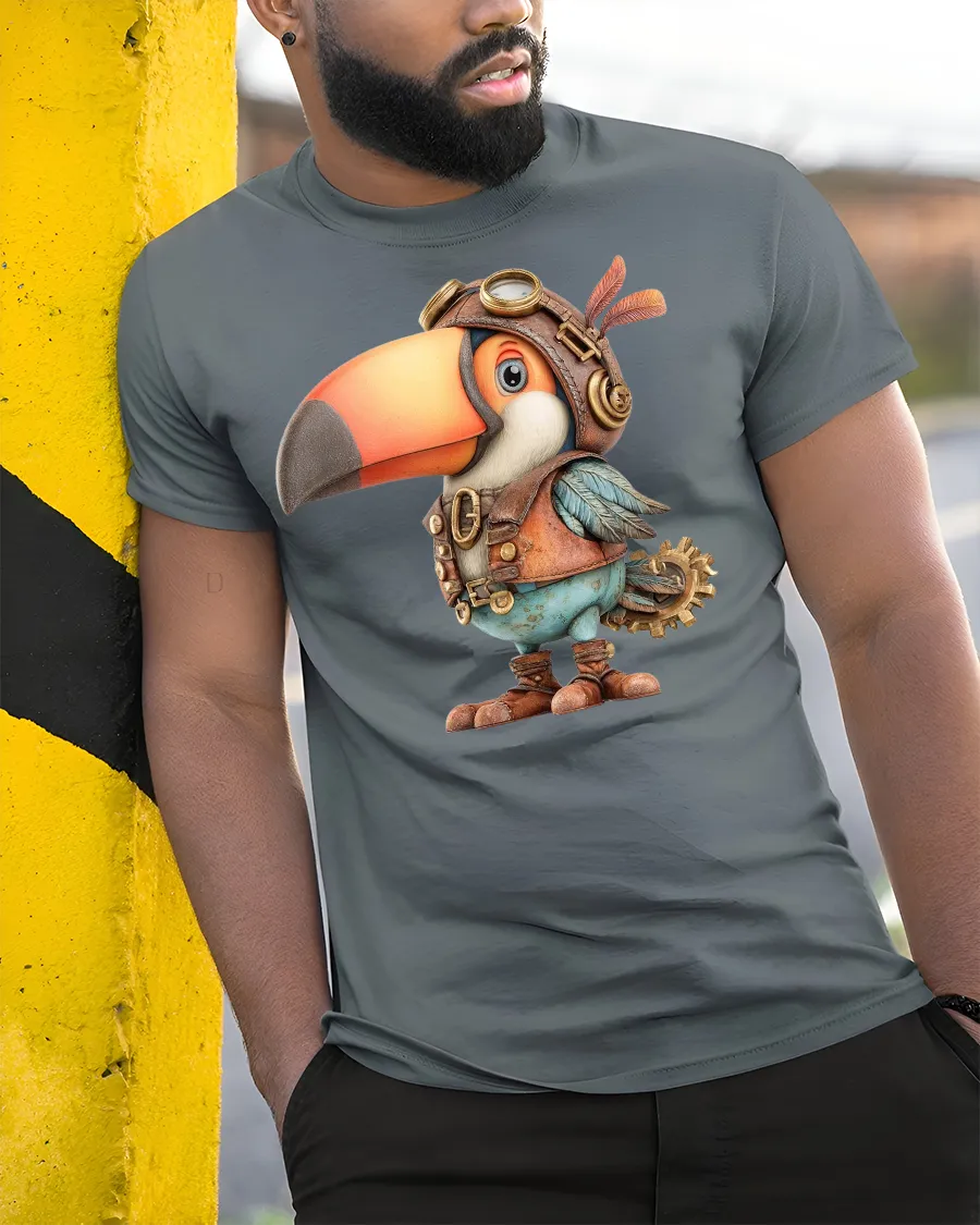 Great for animal lovers, fans of steampunk culture, or anyone with a love of fun graphic fashion, this toucan graphic tee also makes a fantastic gift. Add a touch of humor and style to your collection with this one-of-a-kind design that blends exotic wildlife with fantasy adventure.