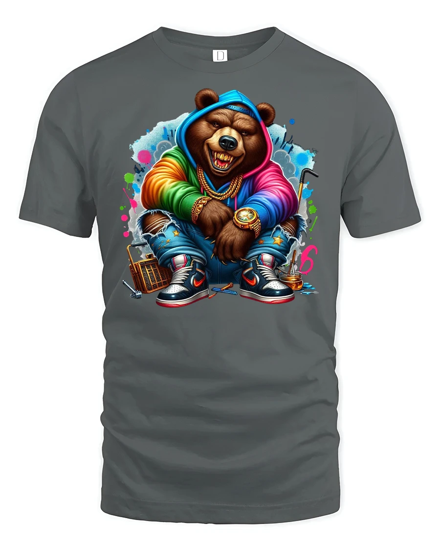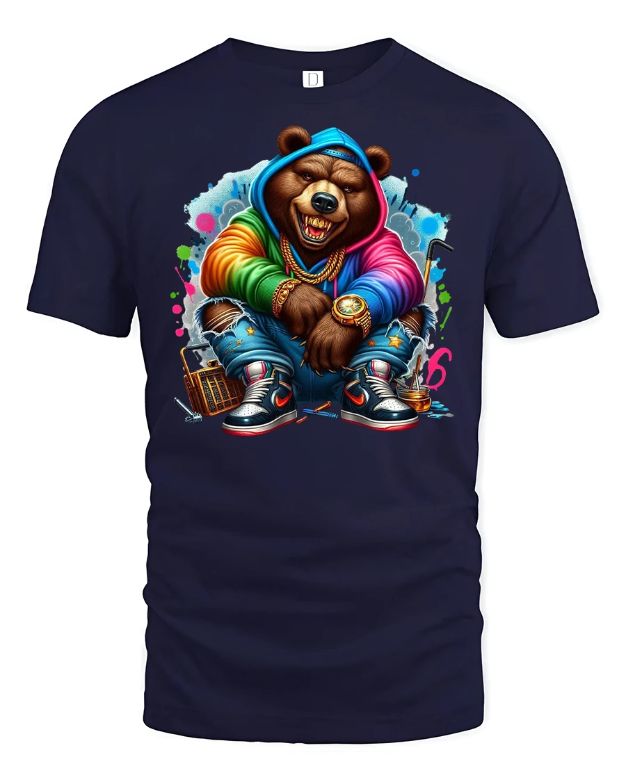 Whether you’re a hip hop fan, streetwear enthusiast, or just someone looking for a fun and eye-catching shirt, this bear tee is a must-have. Add a touch of playful swagger to your wardrobe and show off your unique style with this vibrant hip hop bear design.