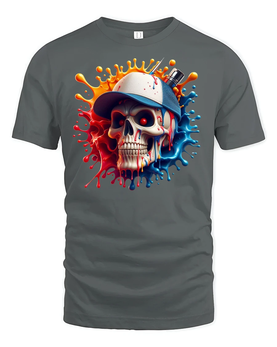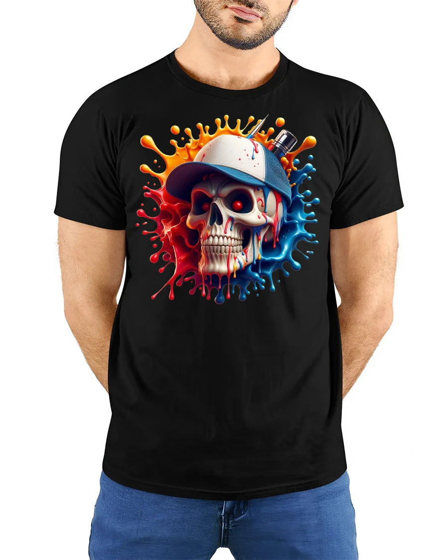 Street Style Skull Cap Tee brings street style and bold design together in one eye-catching piece. Featuring a realistic skull wearing a cap, surrounded by explosive splashes of fiery red, cool blue, and bright yellow, this tee captures the energy of graffiti and urban culture. The vivid colors and striking contrast make it a standout choice for edgy fashion lovers.