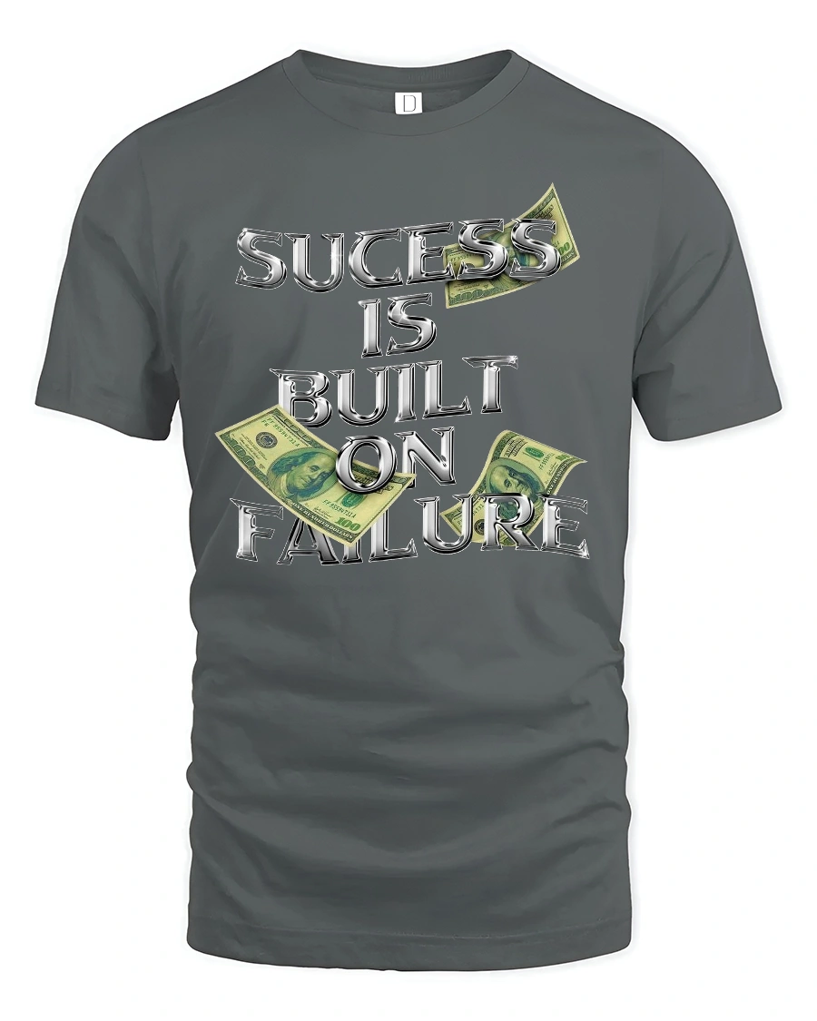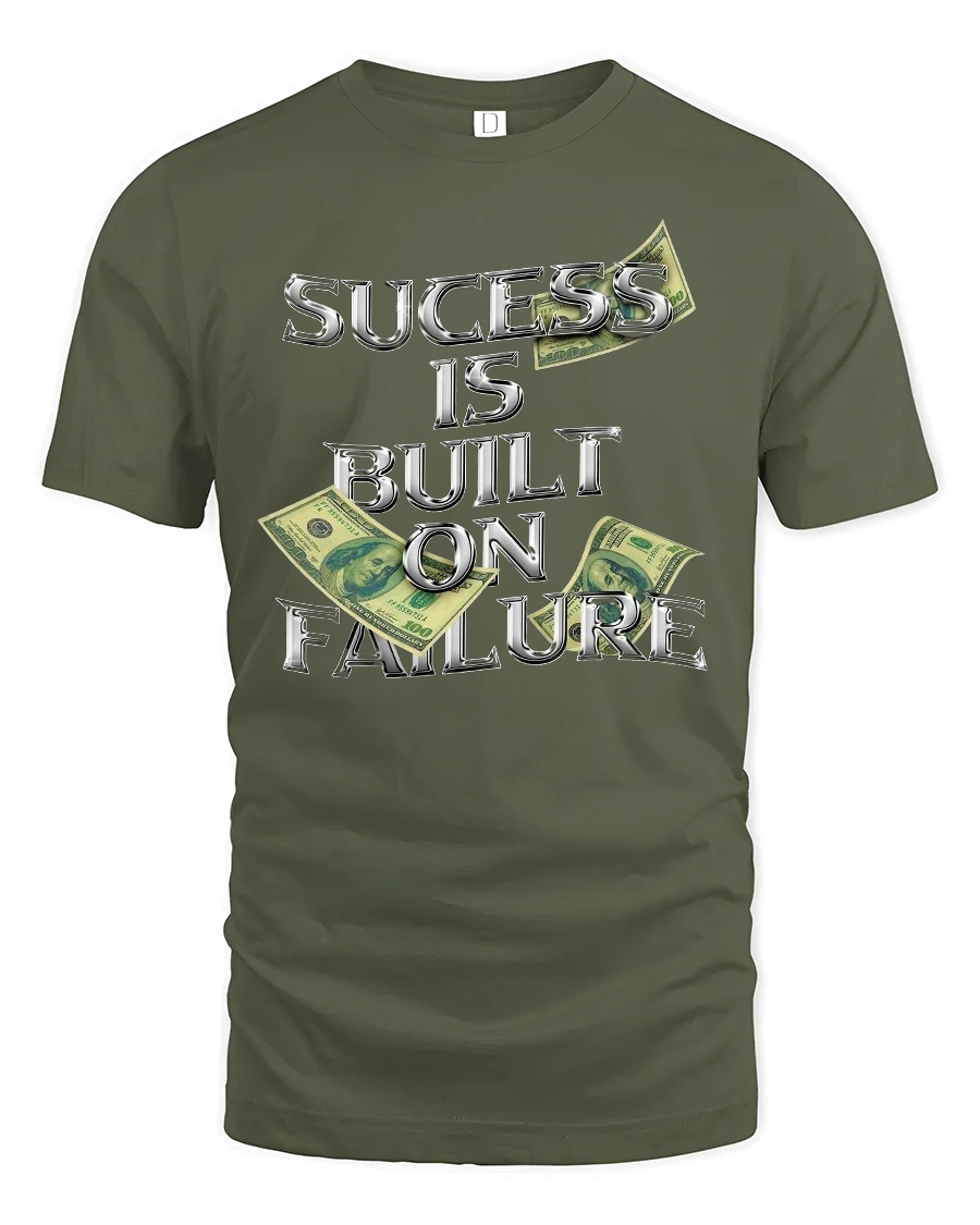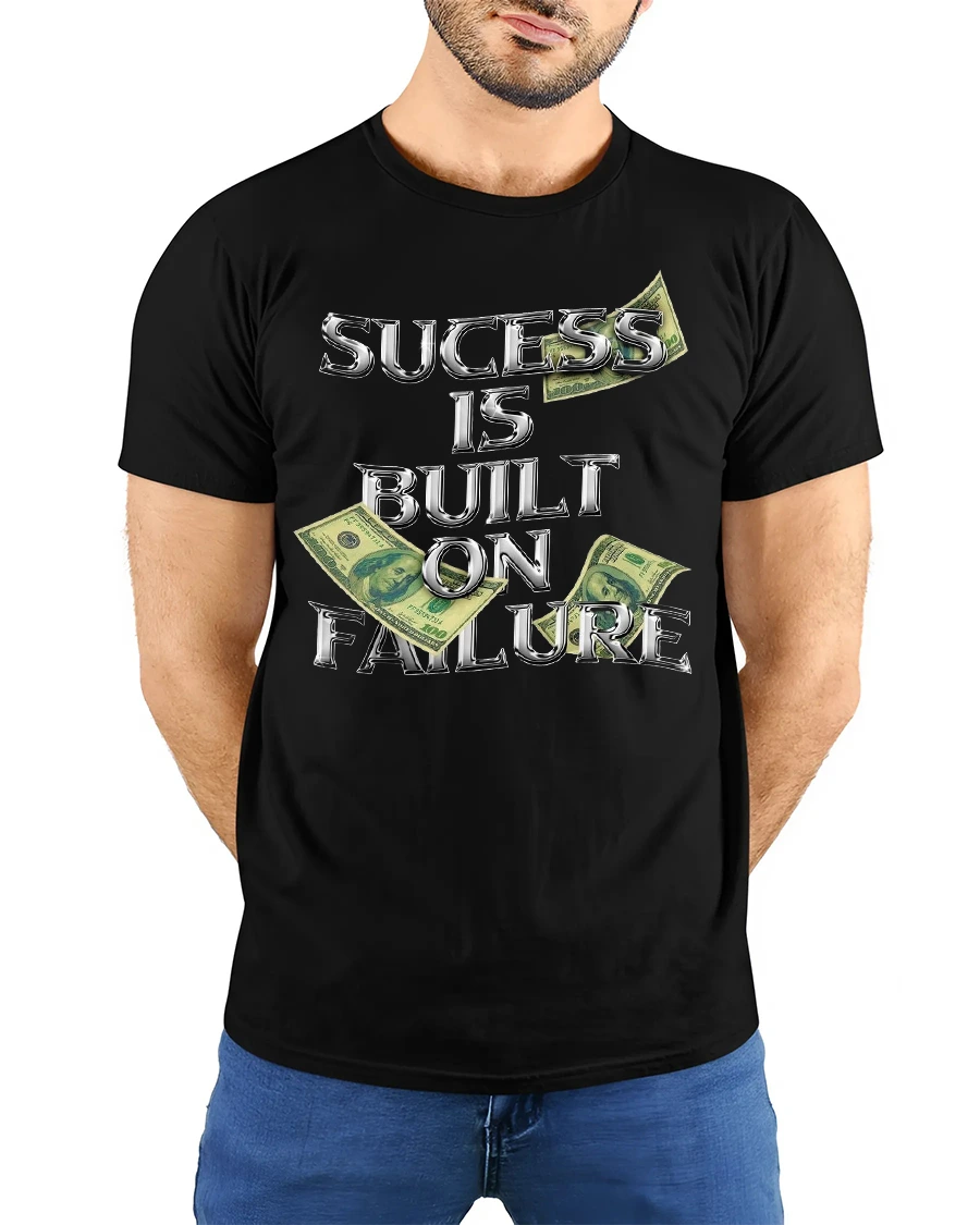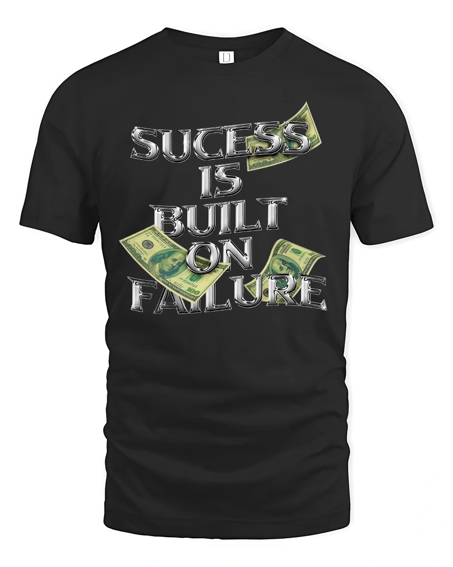 Success Built on Failure Money Quote Graphic T-shirt is the perfect choice for hustlers, dreamers, and go-getters who know that every setback leads to a bigger comeback. Featuring bold chrome-style lettering with dollar bill accents, this tee makes a strong statement about the grind and the journey to success.