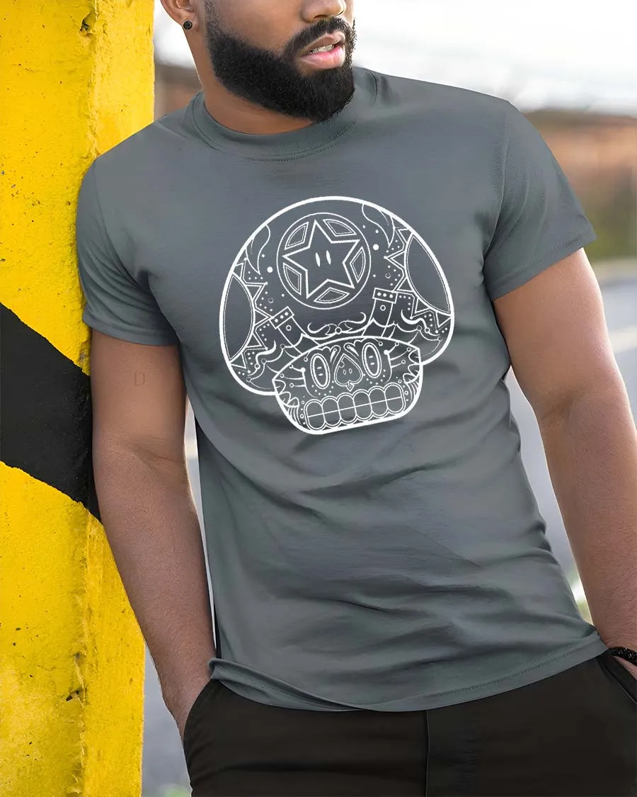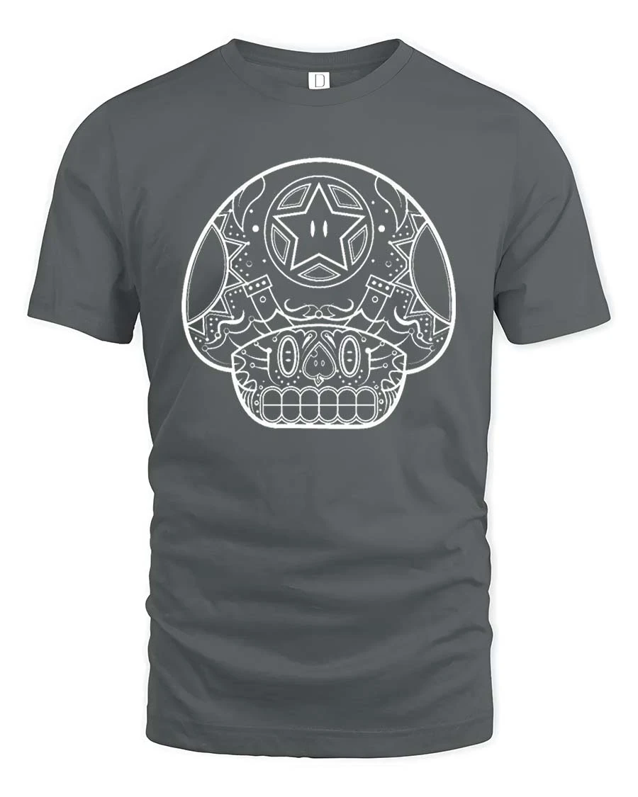 Sugar Skull Mushroom Line Art Graphic t-shirt Gothic Tee adds artistic personality to any graphic tee collection.