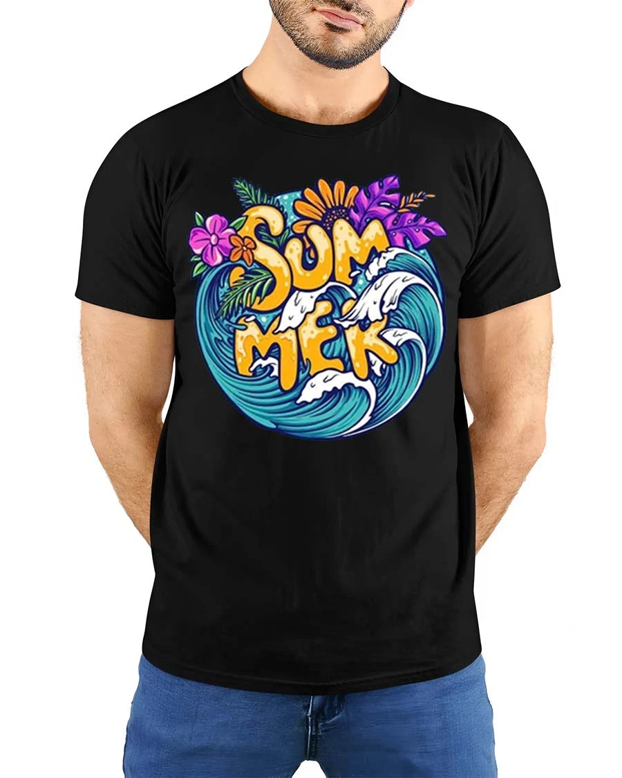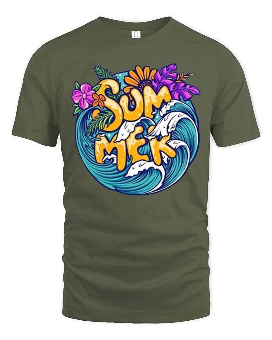 Featuring vibrant tropical flowers, ocean waves, and bold “SUMMER” lettering, this design brings together everything people love about warm weather and beach life.