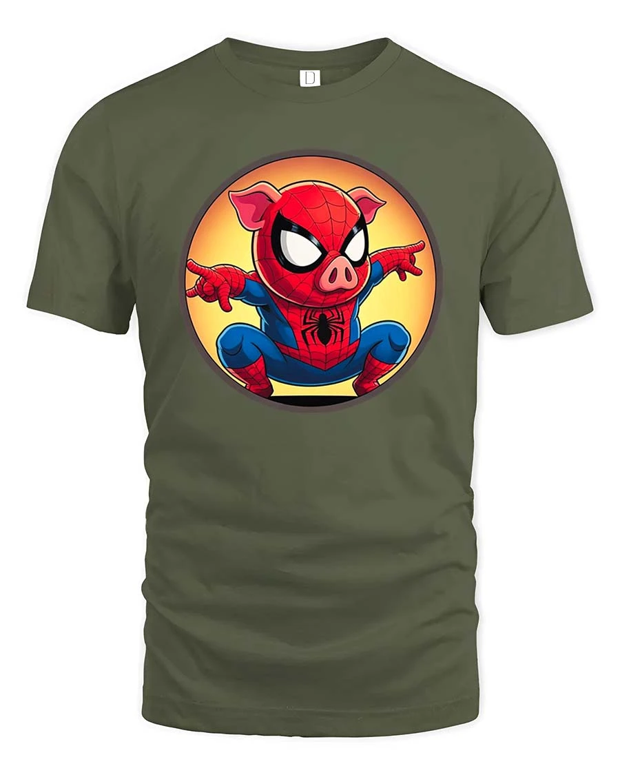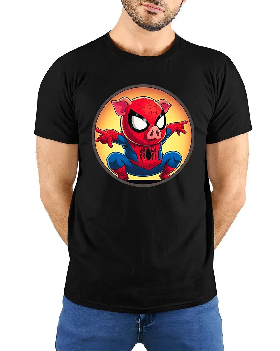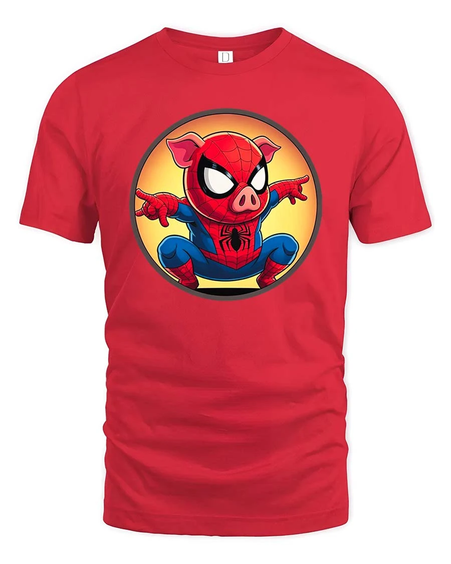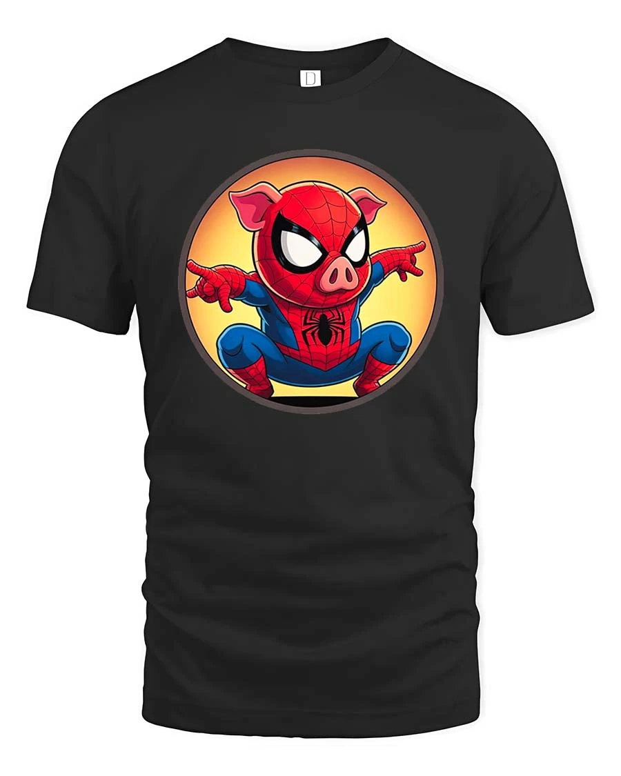 Featuring an adorable pig dressed as a superhero in an action pose, this t-shirt brings a creative and lighthearted twist to classic hero themes.