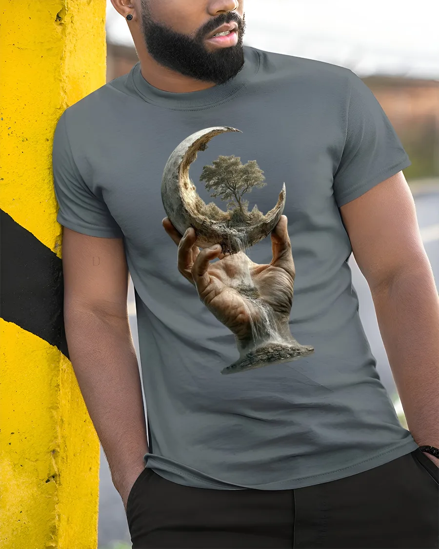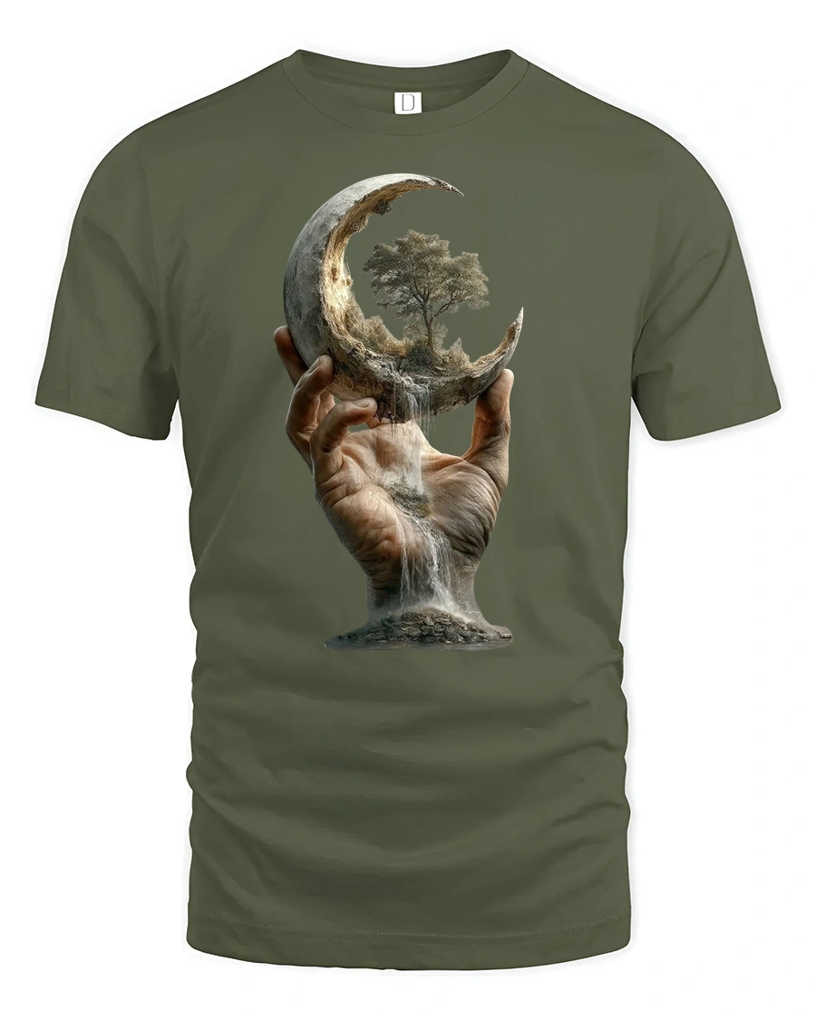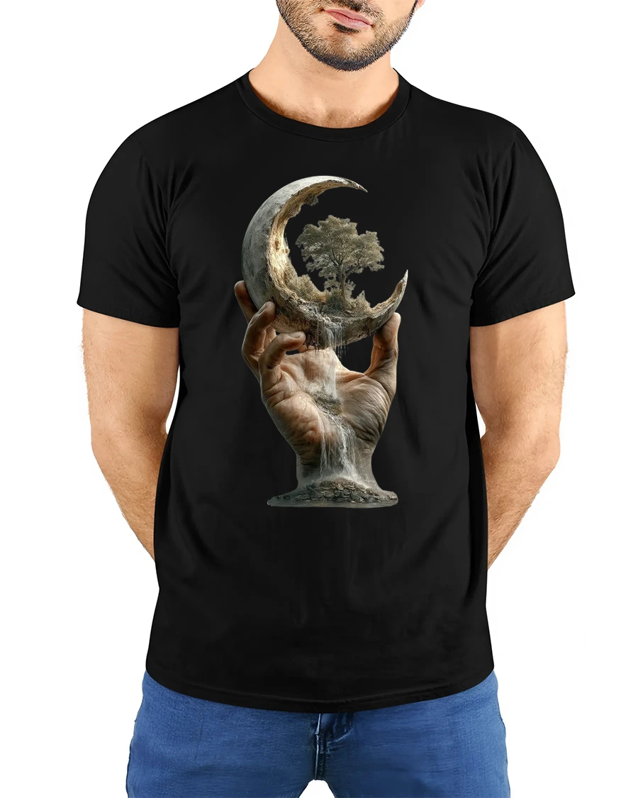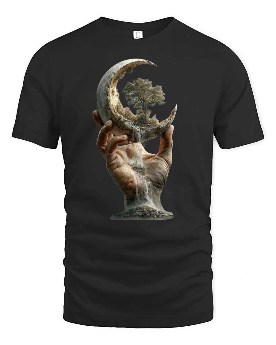 Surreal Moon Hand Tree Nature Fantasy Print T-shirt brings together cosmic wonder and artistic imagination in a single breathtaking design. Featuring a hand holding a crescent moon that flows like a waterfall with a tree growing from within, this tee captures themes of balance, creation, and the beauty of nature. It’s a wearable piece of surreal art that turns heads and sparks conversation wherever you go.