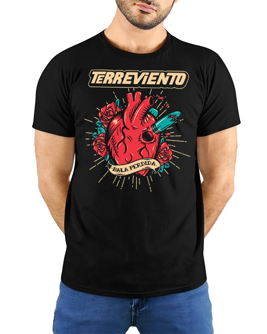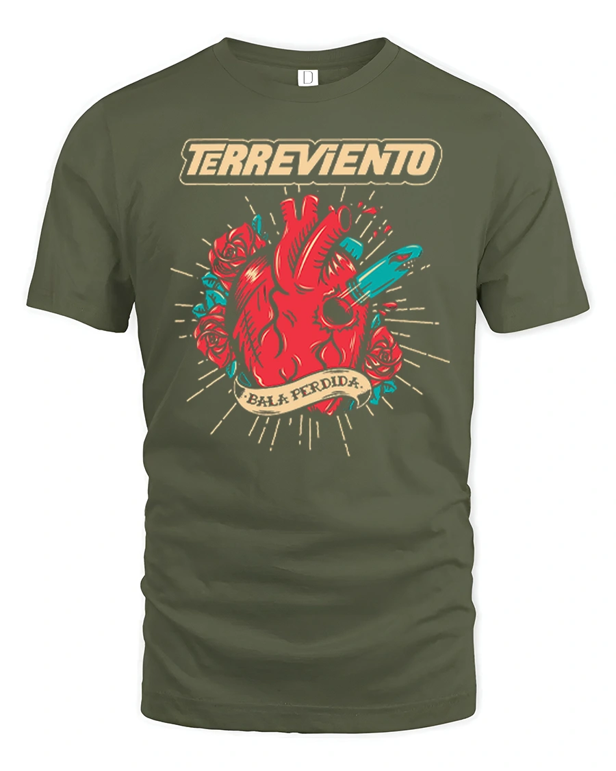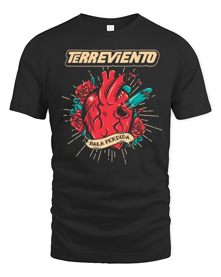 The Terreviento Sacred Heart Bullet Art Graphic Tee Bold Tattoo Tshirt delivers powerful symbolism through striking vintage inspired artwork.