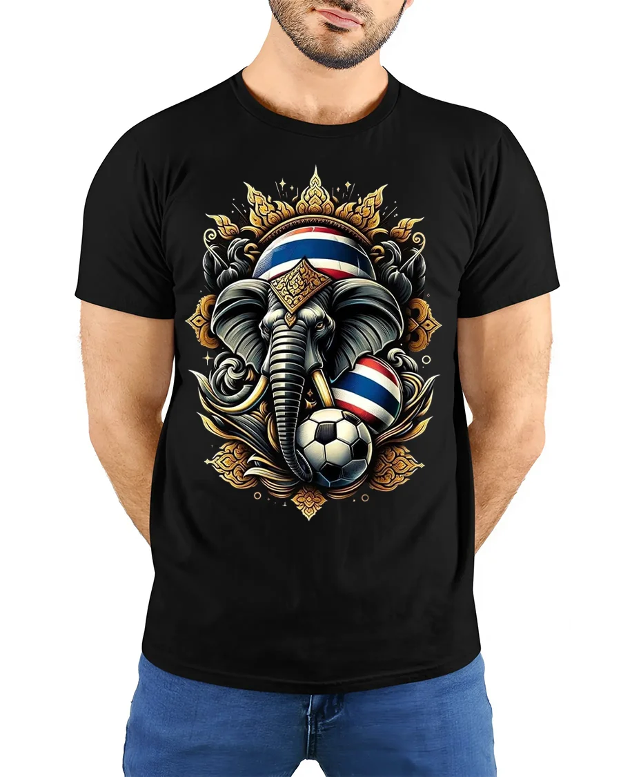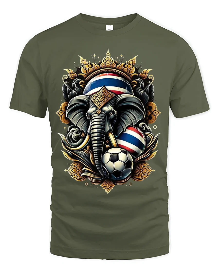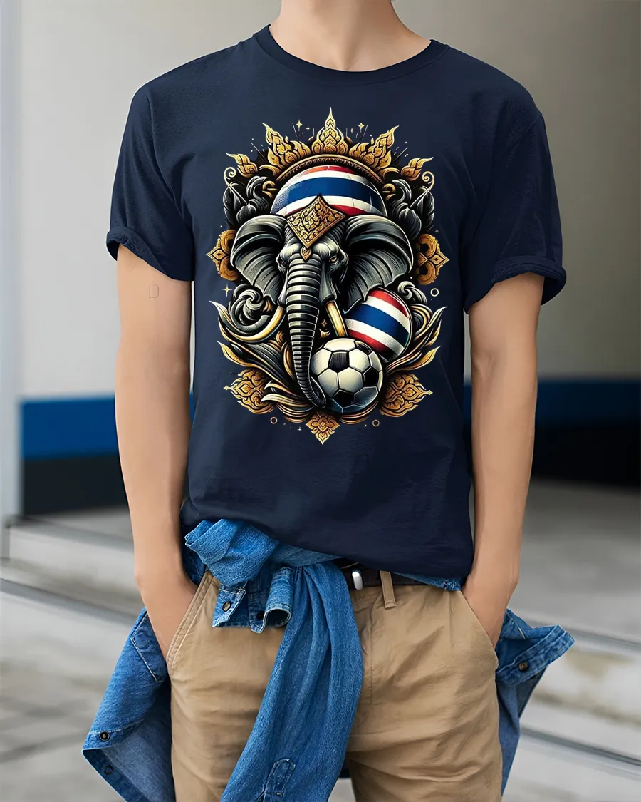 Thailand Elephant Soccer Graphic Tshirt With Royal Power Art Style blends cultural strength and sports passion into a striking visual design.