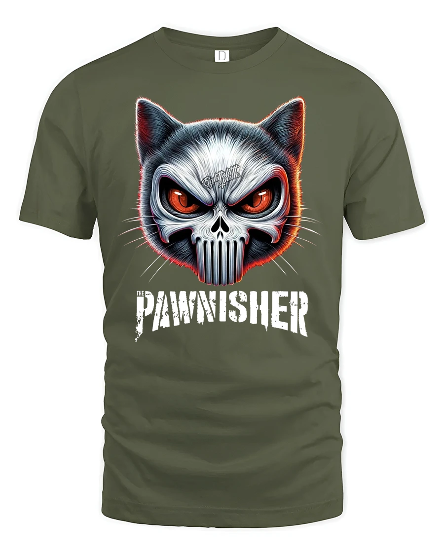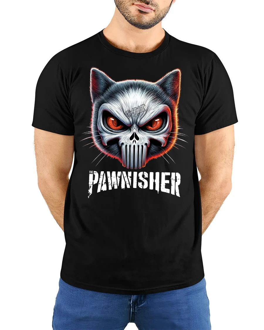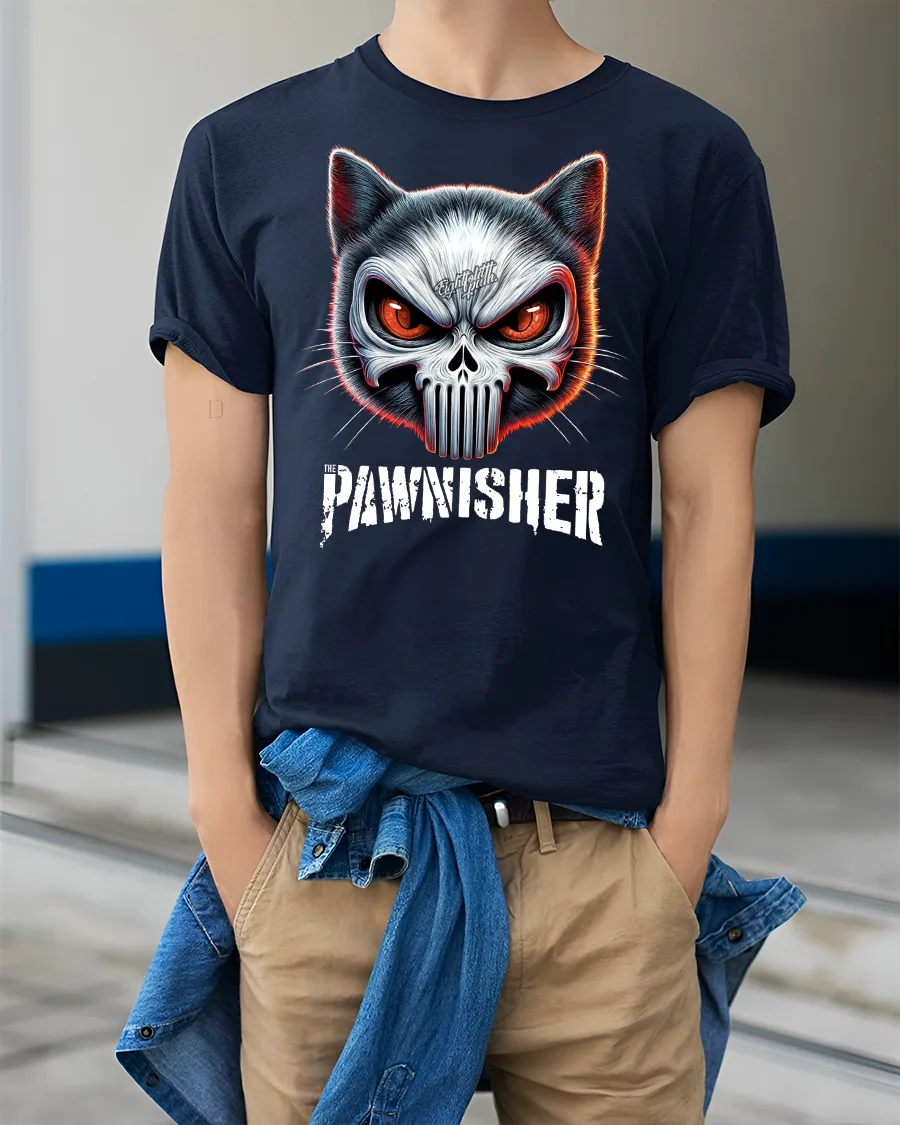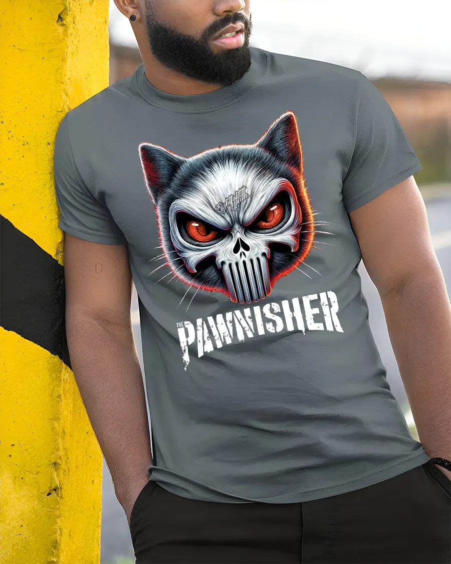 The Pawnisher Cat Skull Graphic Tee for Rebels delivers fearless energy with a hilarious twist.