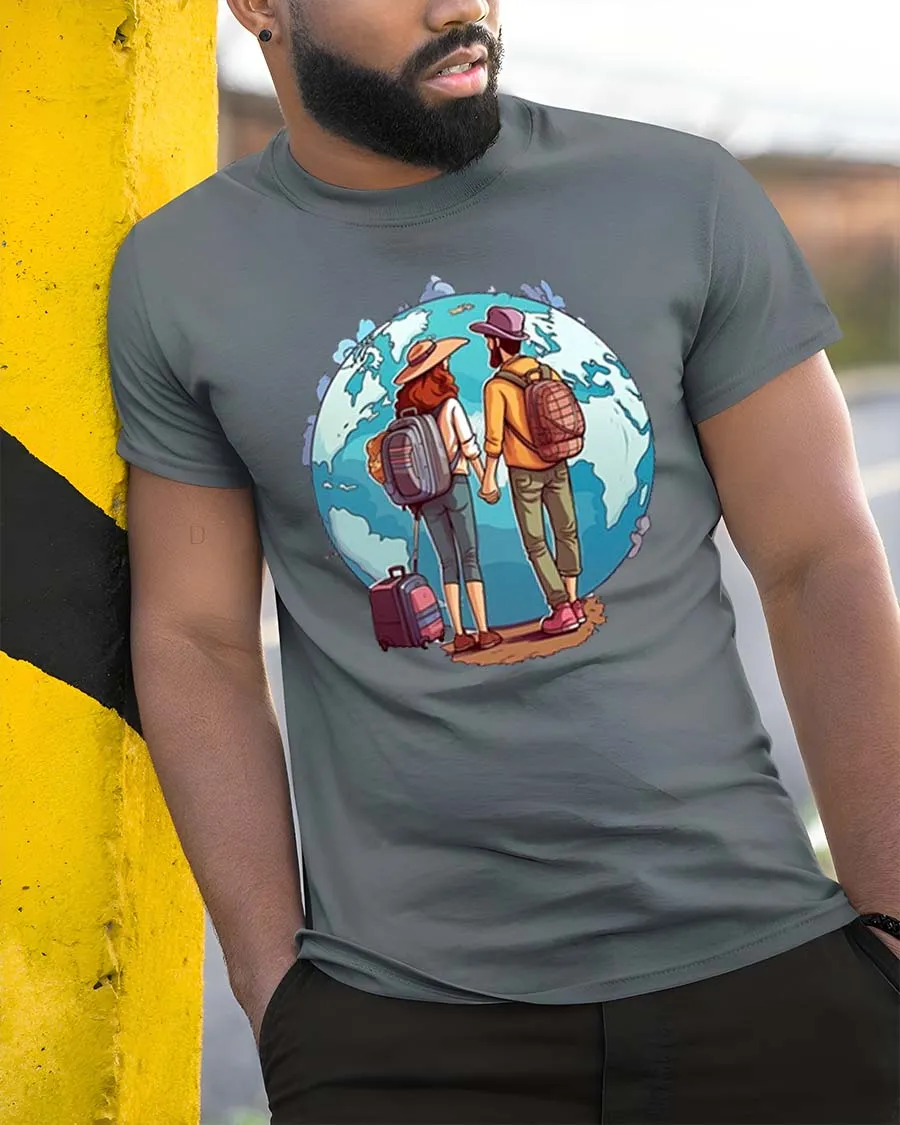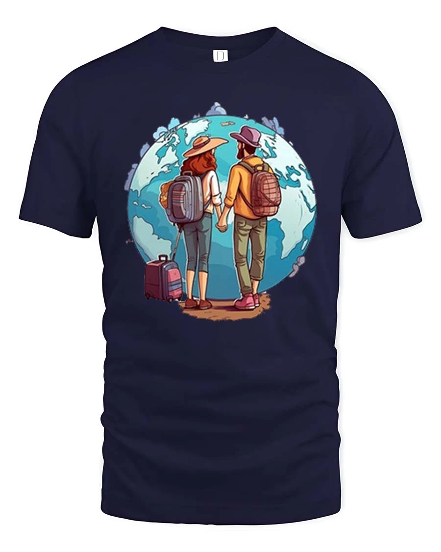 The Travel Couple World Adventure T-Shirt is a perfect design for those who love exploring the world together.